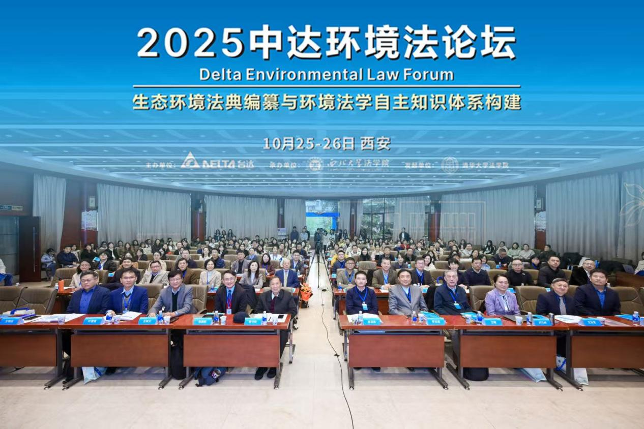 10月25日至26日,由台达集团主办、8868体育登录法学院承办的“2025中达环境法论坛”在太白校区召开。来自北京大学、清华大学、中国人民大学、中国政法大学、武汉大学、中南财经政法大学、上海交通大学、郑州大学等高校的专家学者和青年师生代表围绕“生态环境法典编纂与环境法学自主知识体系构建”主题展开深入研讨。