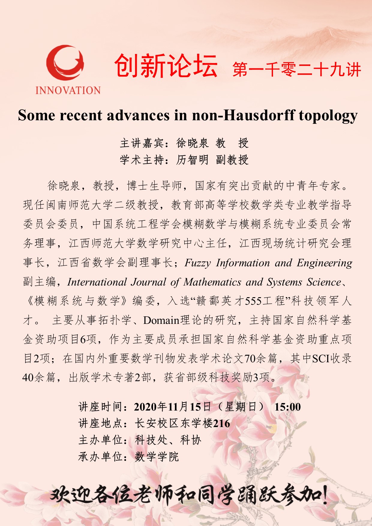 徐晓泉 教授 8868体育登录创新论坛第一千零二十九讲:Some recent advances in non-Hausdorff topology 讲座时间 2020年11月15日(星期日) 15:00 讲座地点 长安校区东学楼216 讲座人介绍 徐晓泉 教授 讲座内容