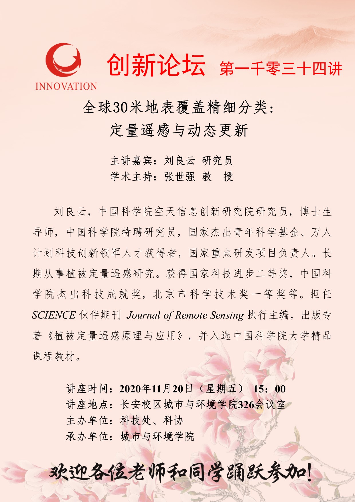 刘良云 研究员 8868体育登录创新论坛第一千零三十四讲:全球30米地表覆盖精细分类:定量遥感与动态更新 讲座时间 2020年11月20日(星期五) 15:00 讲座地点 长安校区城市与环境学院326会议室 讲座人介绍 刘良云 研究员 讲座内容