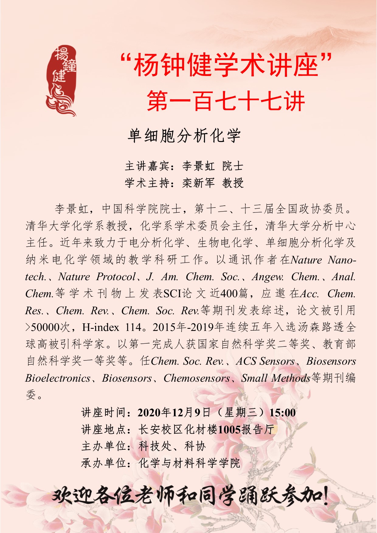 “杨钟健学术讲座”第一百七十七讲:单细胞分析化学