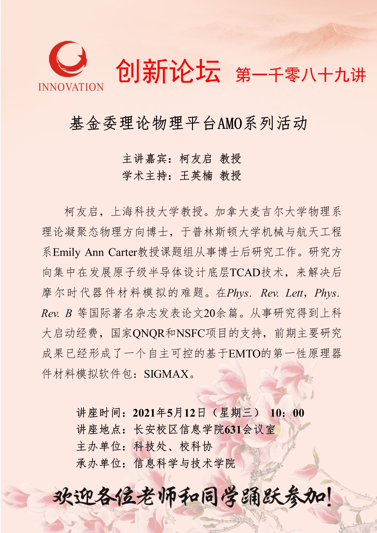 柯友启 教授 8868体育登录创新论坛第一千零八十九讲:基金委理论物理平台AMO系列活动 讲座时间 2021年5月12日(星期三) 10:00 讲座地点 长安校区信息学院631会议室 讲座人介绍 柯友启 教授 讲座内容