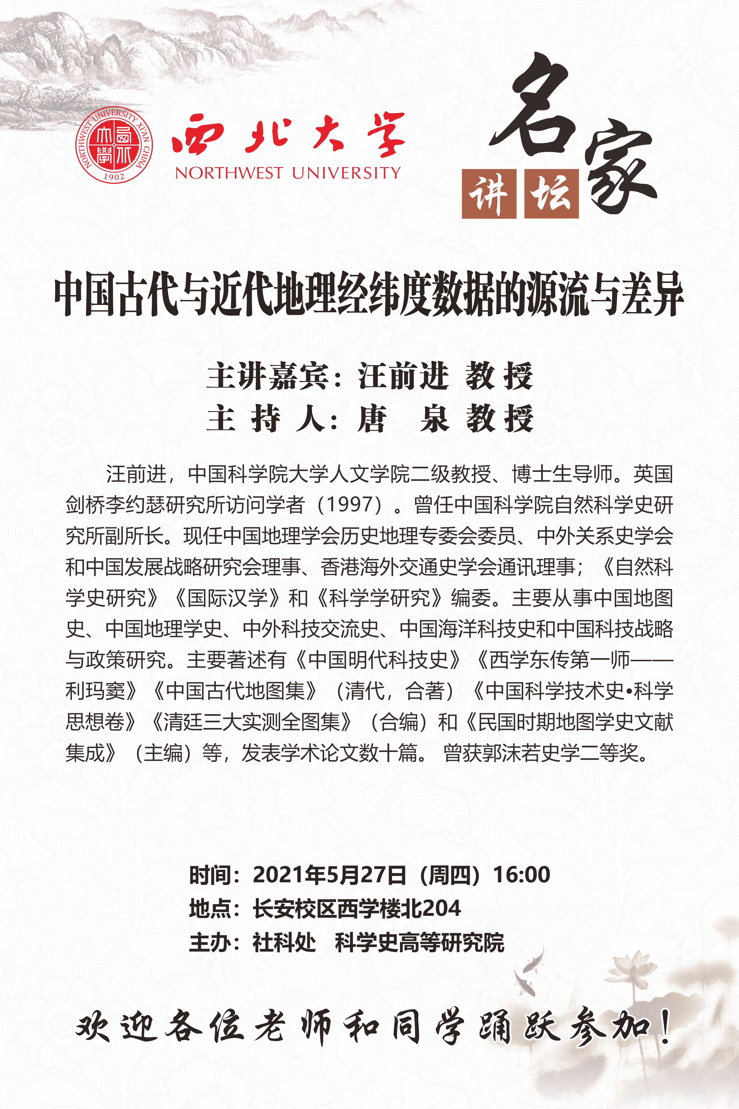 名家讲坛:中国古代与近代地理经纬度数据的源流与差异