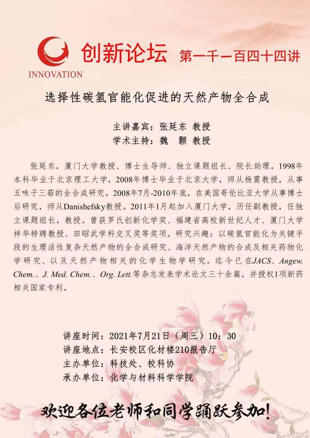 创新论坛第一千一百四十四讲:选择性碳氢官能化促进的天然产物全合成