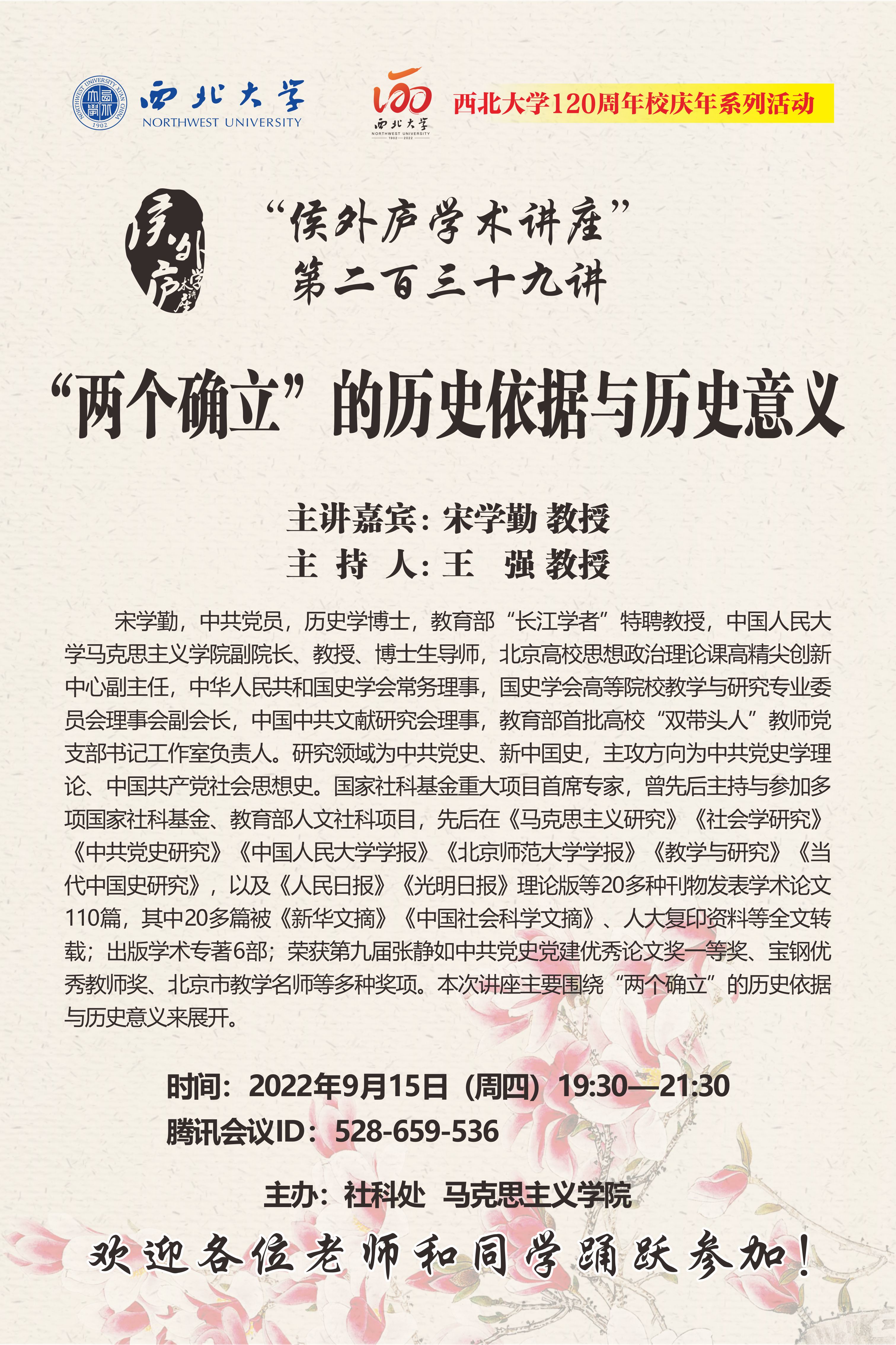侯外庐学术讲座第二百三十九讲暨120周年校庆年系列活动:“两个确立”的历史依据与历史意义