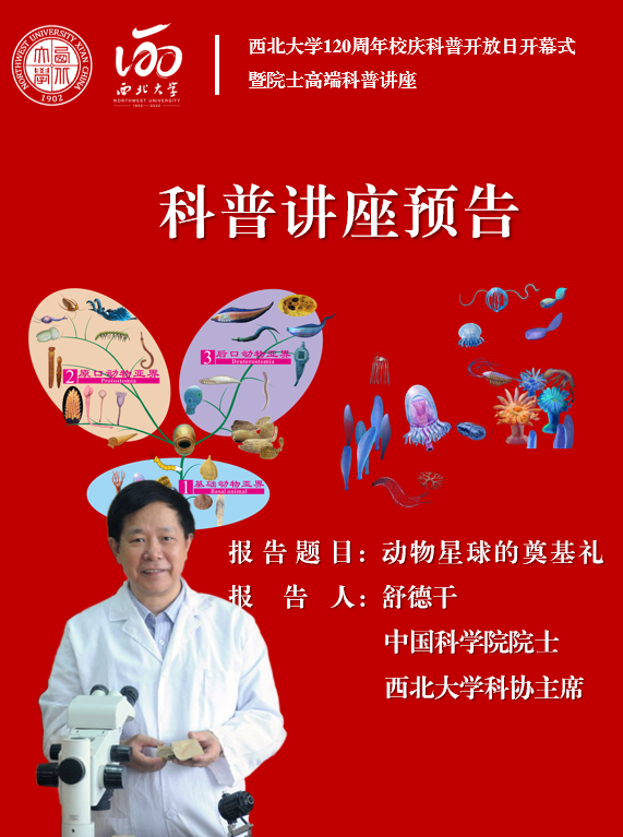 舒德干院士 8868体育登录高端科普讲座:动物星球的奠基礼 讲座时间 2022年11月12日(星期六)9:00 讲座地点 太白校区萃园多功能报告厅/蔻享直播:https://www.koushare.com/lives/room/623846 讲座人介绍 舒德干院士 讲座内容