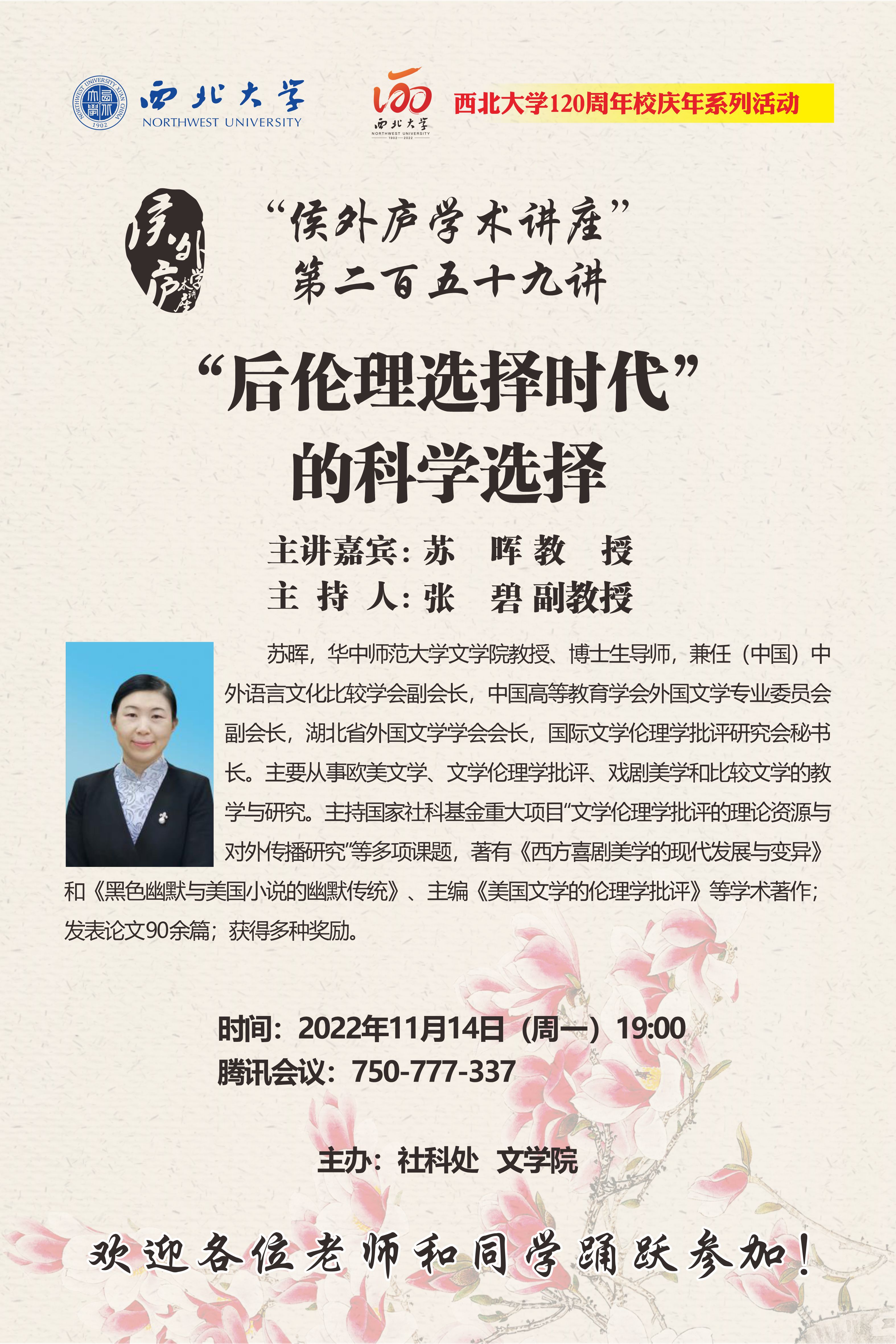 侯外庐学术讲座第二百五十九讲暨120周年校庆年系列活动:“后伦理选择时代”的科学选择