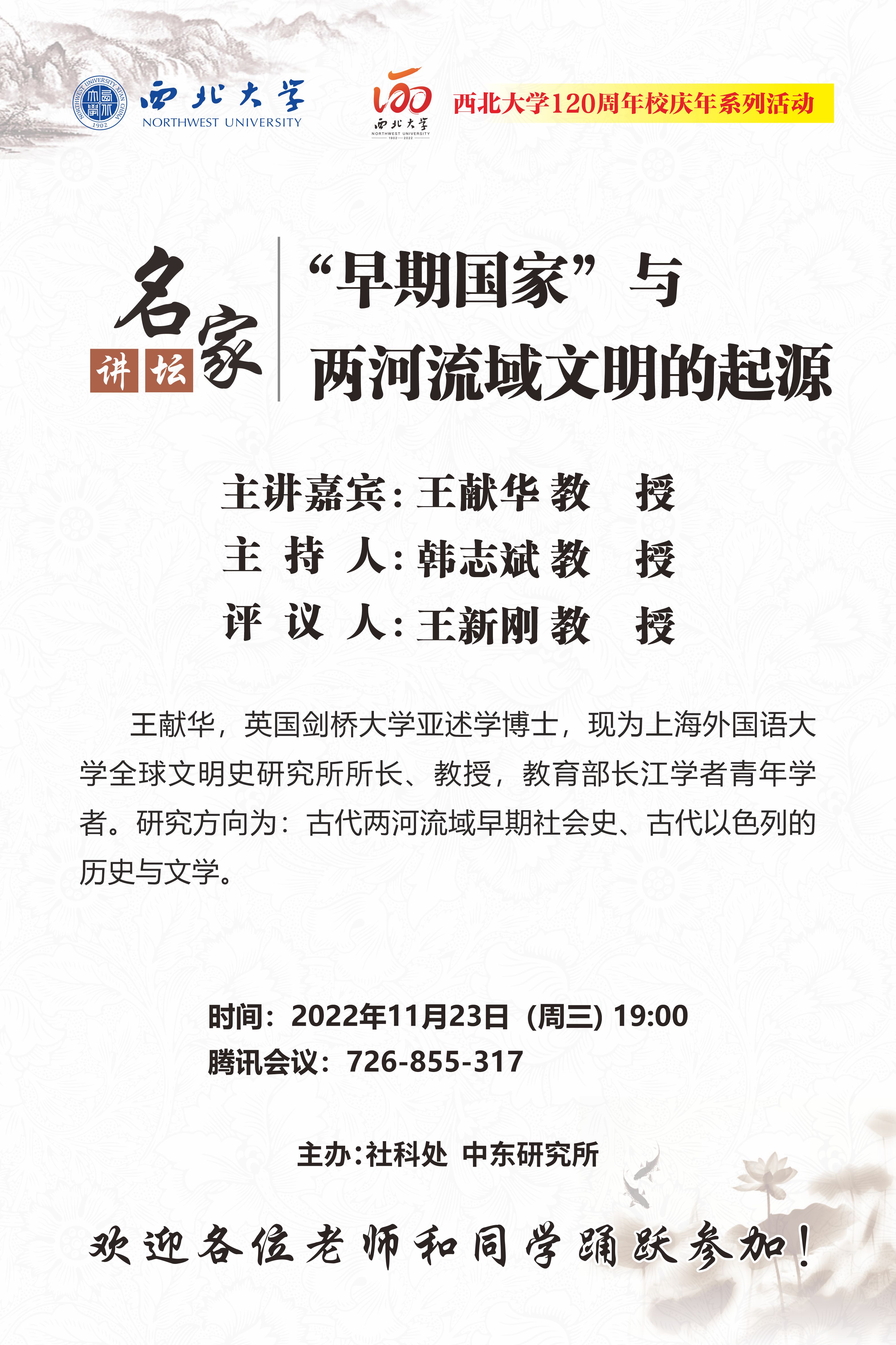 名家讲坛暨120周年校庆年系列活动:“早期国家”与两河流域文明的起源