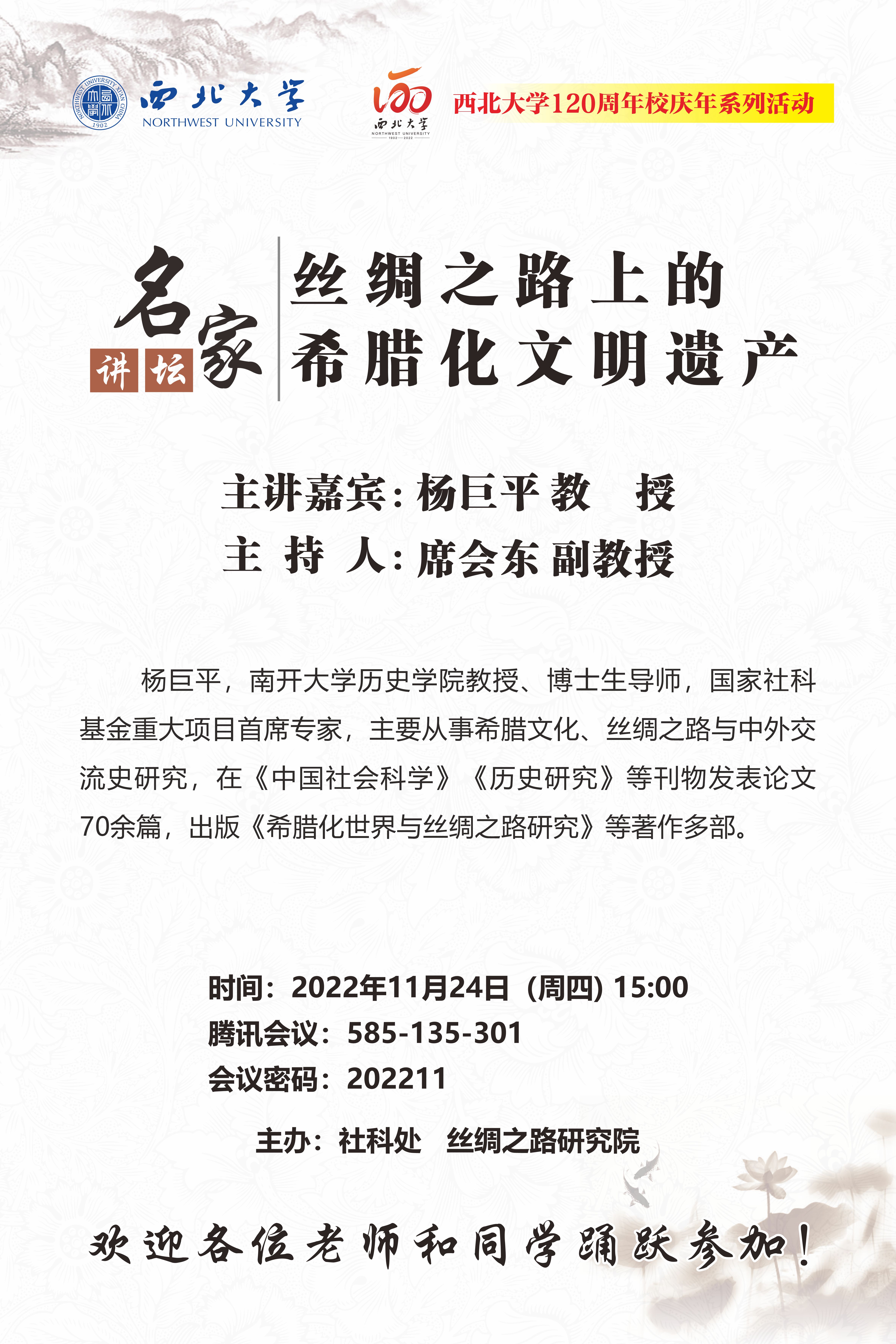 名家讲坛暨120周年校庆年系列活动:丝绸之路上的希腊化文明遗产