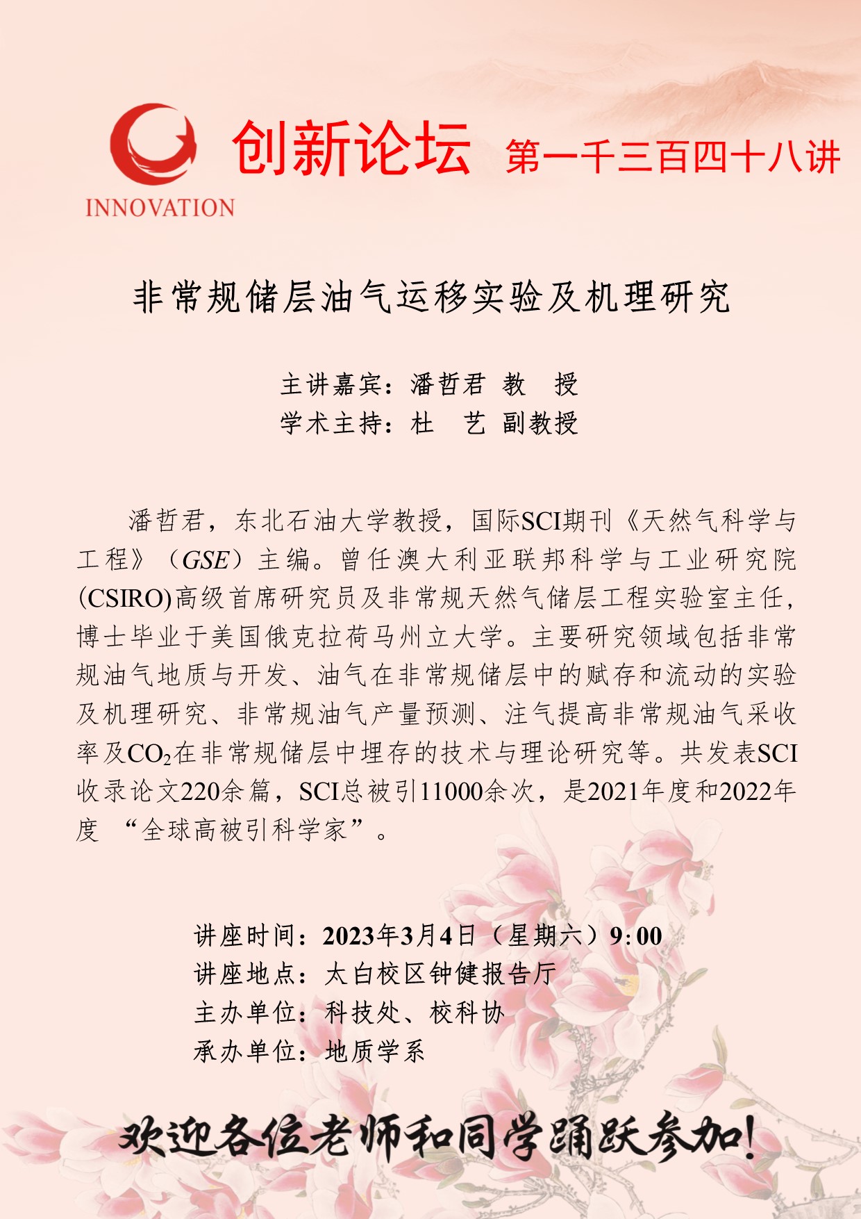 潘哲君 教授 8868体育登录创新论坛第一千三百四十八讲:非常规储层油气运移实验及机理研究 讲座时间 2023年3月4日(星期六)9:00 讲座地点 太白校区钟健报告厅 讲座人介绍 潘哲君 教授 讲座内容