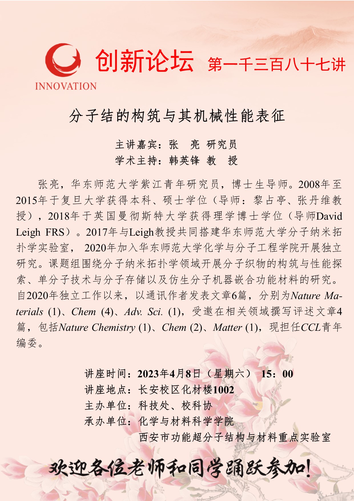 张 亮 研究员 8868体育登录创新论坛第一千三百八十七讲:分子结的构筑与其机械性能表征 讲座时间 2023年4月8日(星期六) 15:00 讲座地点 长安校区化材楼1002 讲座人介绍 张 亮 研究员 讲座内容