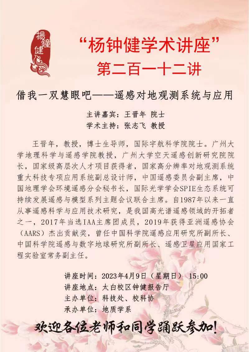 杨钟健学术讲座”第二百一十二讲:借我一双慧眼吧——遥感对地观测系统与应用