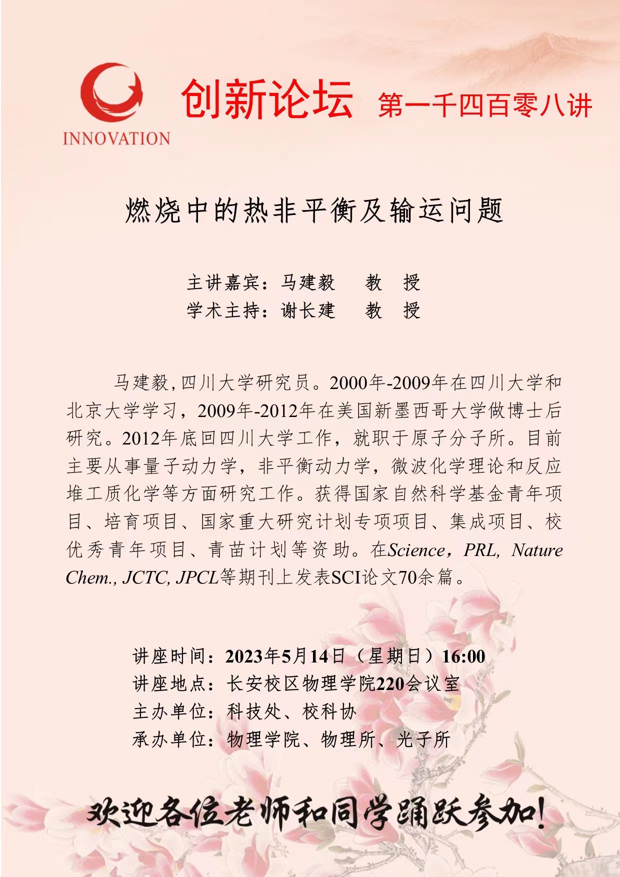 马建毅 教 授 8868体育登录创新论坛第一千四百零八讲:燃烧中的热非平衡及输运问题 讲座时间 2023年5月14日(星期日)16:00 讲座地点 长安校区物理学院220会议室 讲座人介绍 马建毅 教 授 讲座内容