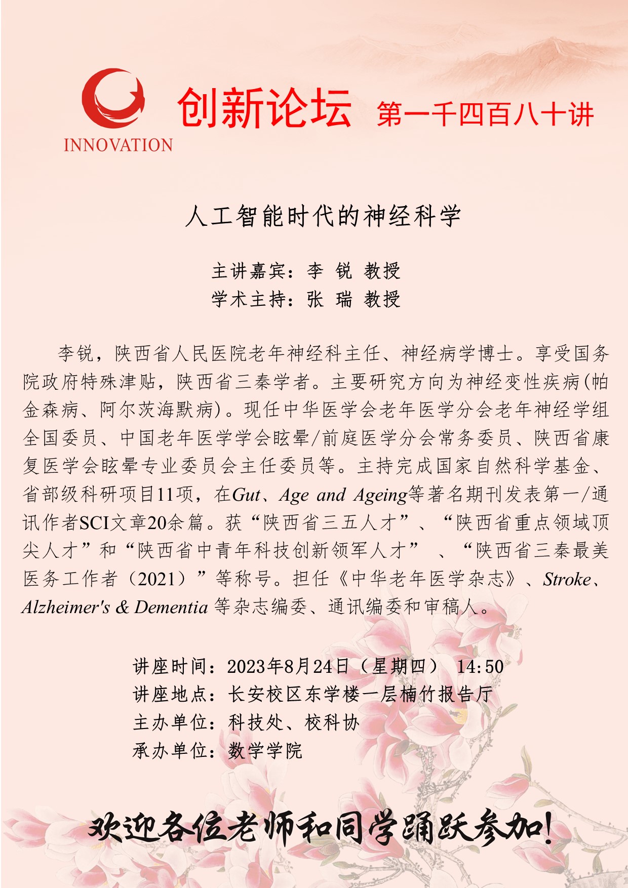 李 锐 教授 8868体育登录创新论坛第一千四百八十讲:人工智能时代的神经科学 讲座时间 2023年8月24日(星期四) 14:50 讲座地点 长安校区东学楼一层楠竹报告厅 讲座人介绍 李 锐 教授 讲座内容