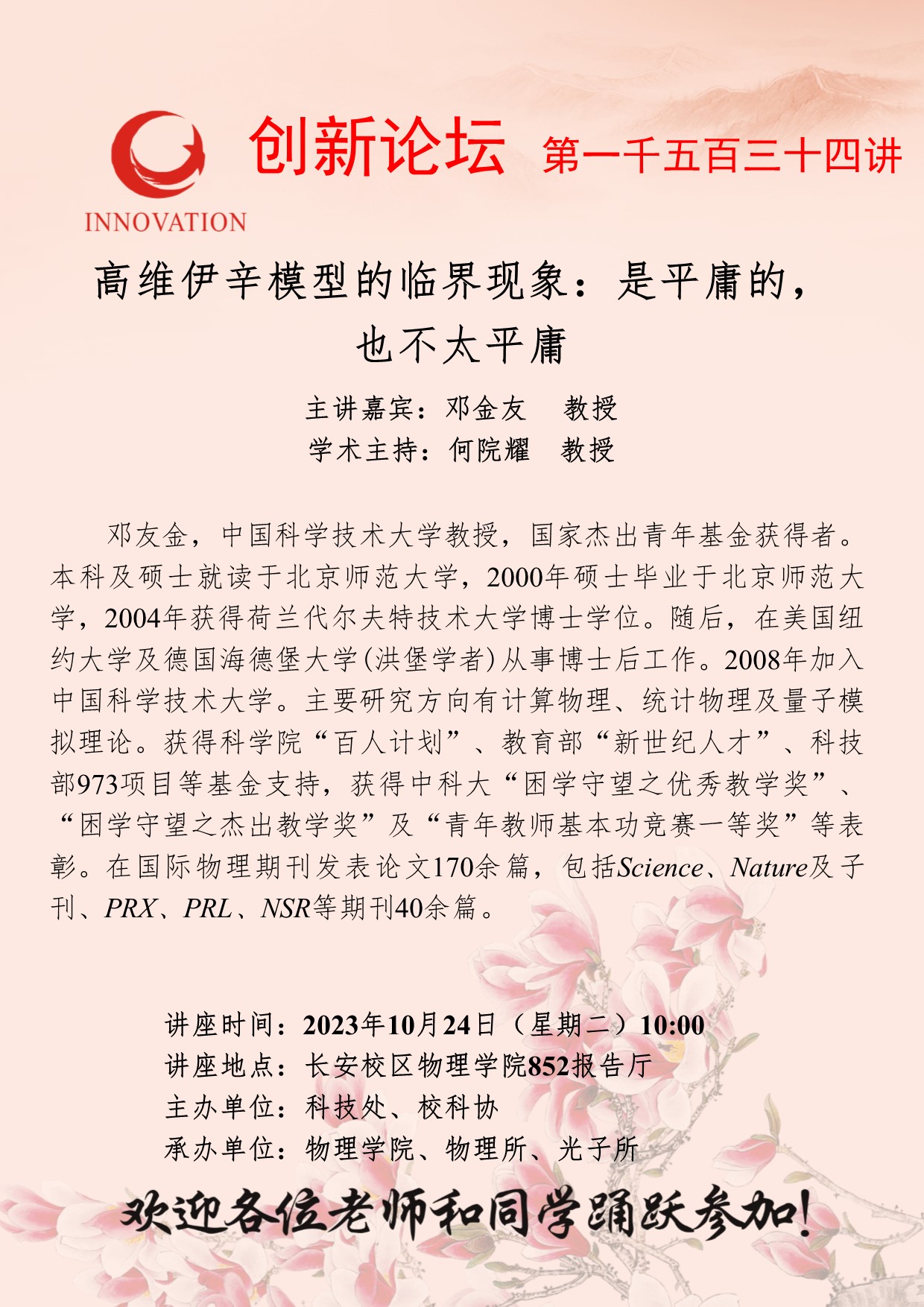 邓金友 教授 8868体育登录创新论坛第一千五百三十四讲:高维伊辛模型的临界现象:是平庸的, 也不太平庸 讲座时间 2023年10月24日(星期二)10:00 讲座地点 长安校区物理学院852报告厅 讲座人介绍 邓金友 教授 讲座内容