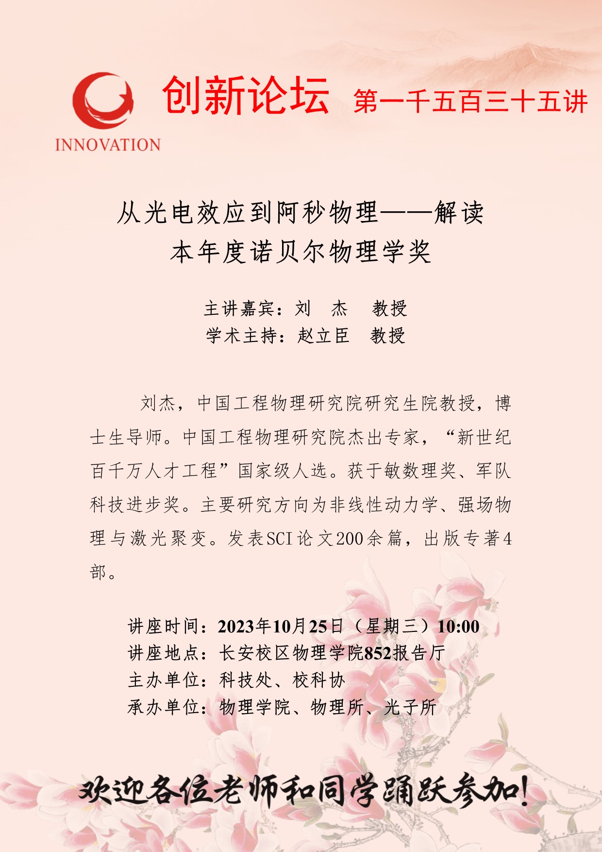 刘 杰 教授 8868体育登录创新论坛第一千五百三十五讲:从光电效应到阿秒物理——解读 本年度诺贝尔物理学奖 讲座时间 2023年10月25日(星期三)10:00 讲座地点 长安校区物理学院852报告厅 讲座人介绍 刘 杰 教授 讲座内容