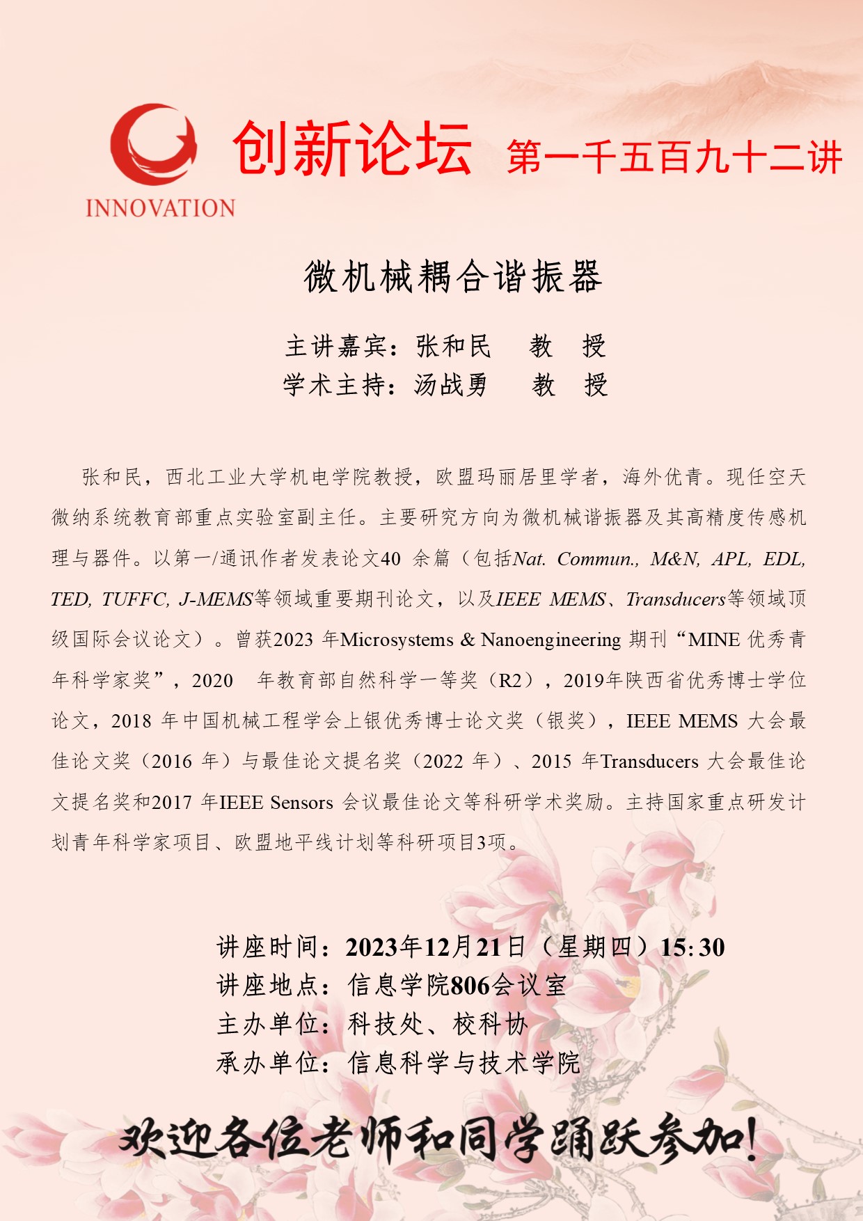 8868体育登录创新论坛第一千五百九十二讲:微机械耦合谐振器