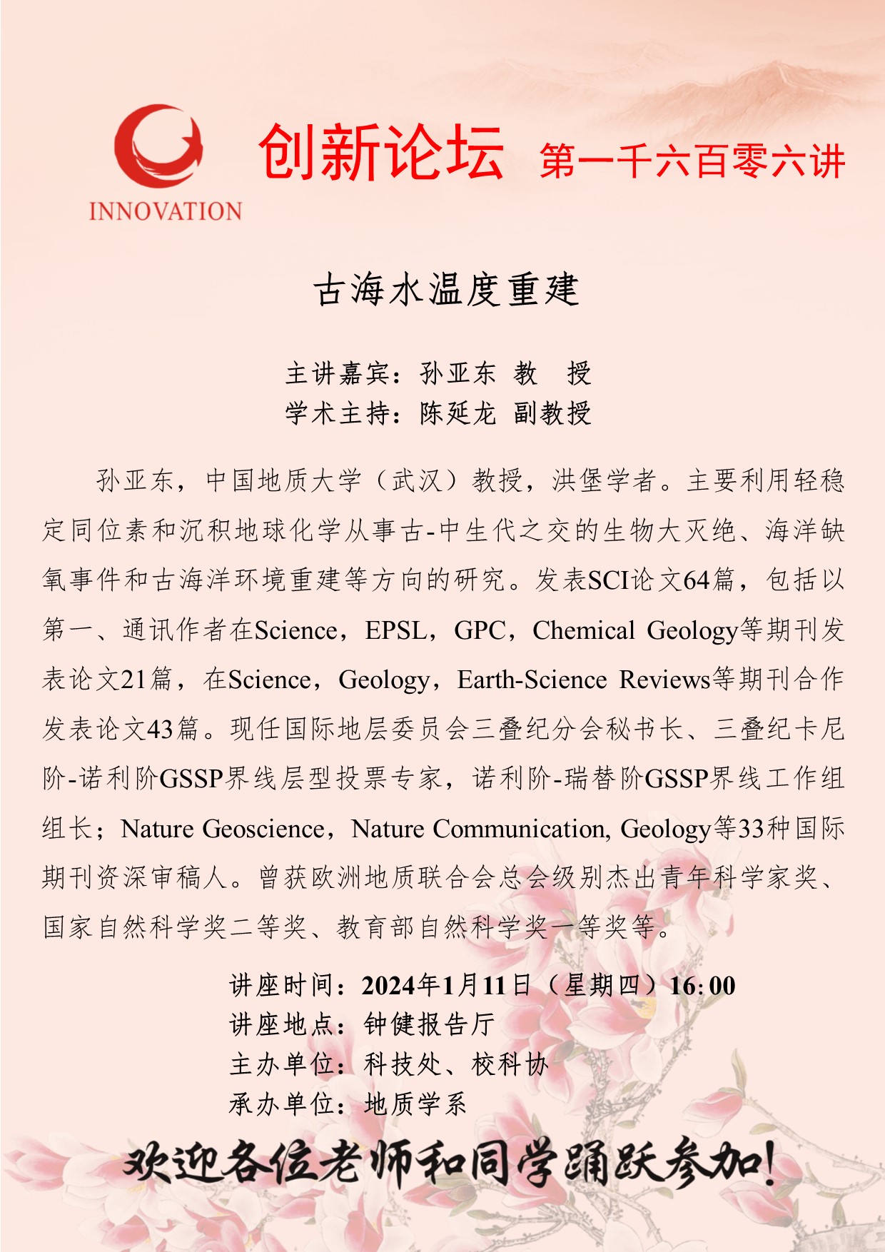 8868体育登录创新论坛第一千六百零六讲: 古海水温度重建