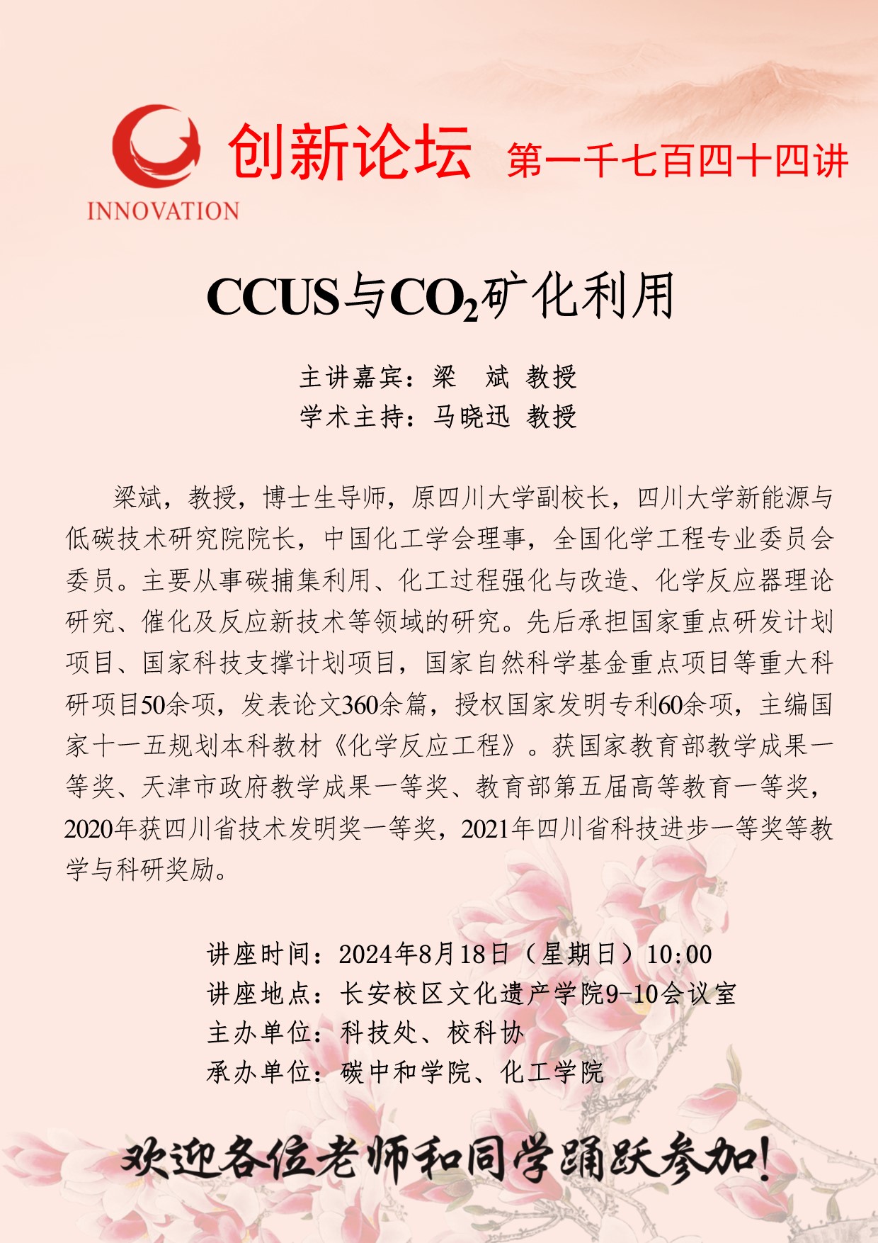 梁斌 教授 8868体育登录创新论坛第一千七百四十四讲:CCUS与CO2矿化利用 讲座时间 2024年8月18日(星期日)10:00 讲座地点 长安校区文化遗产学院9-10会议室 讲座人介绍 梁斌 教授 讲座内容