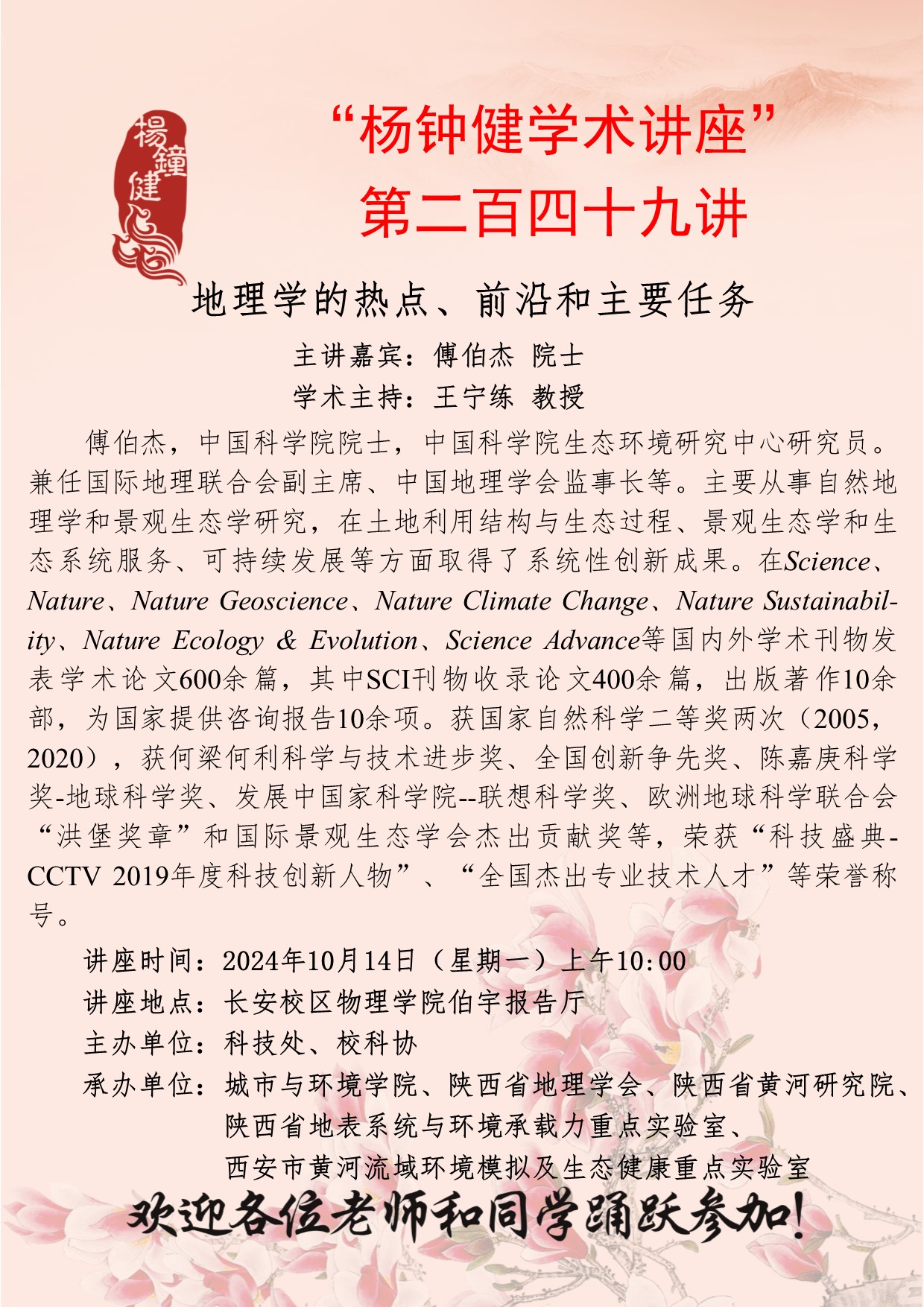“杨钟健学术讲座”第二百四十九讲:地理学的热点、前沿和主要任务
