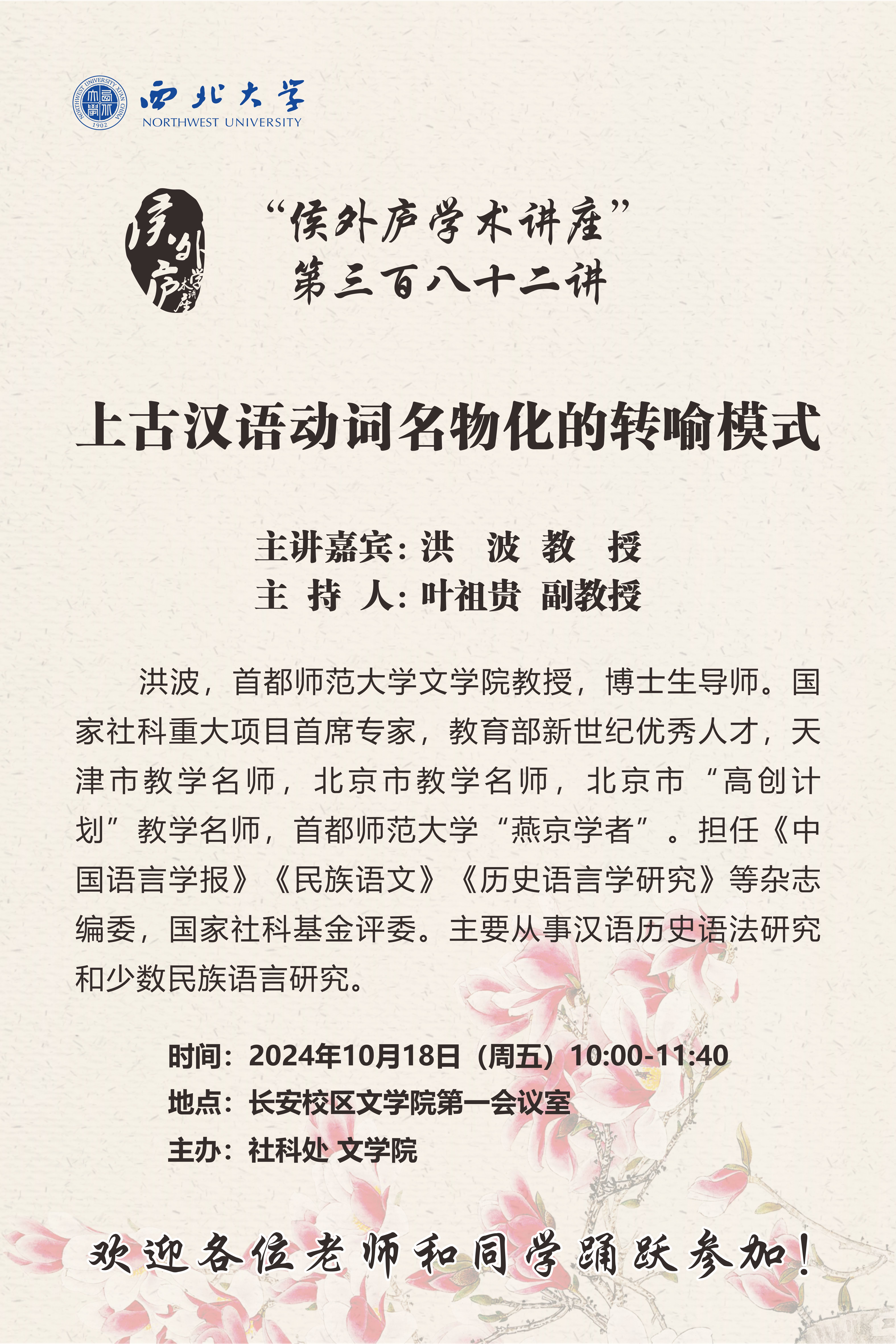 “侯外庐学术讲座”第三百八十二讲:上古汉语动词名物化的转喻模式
