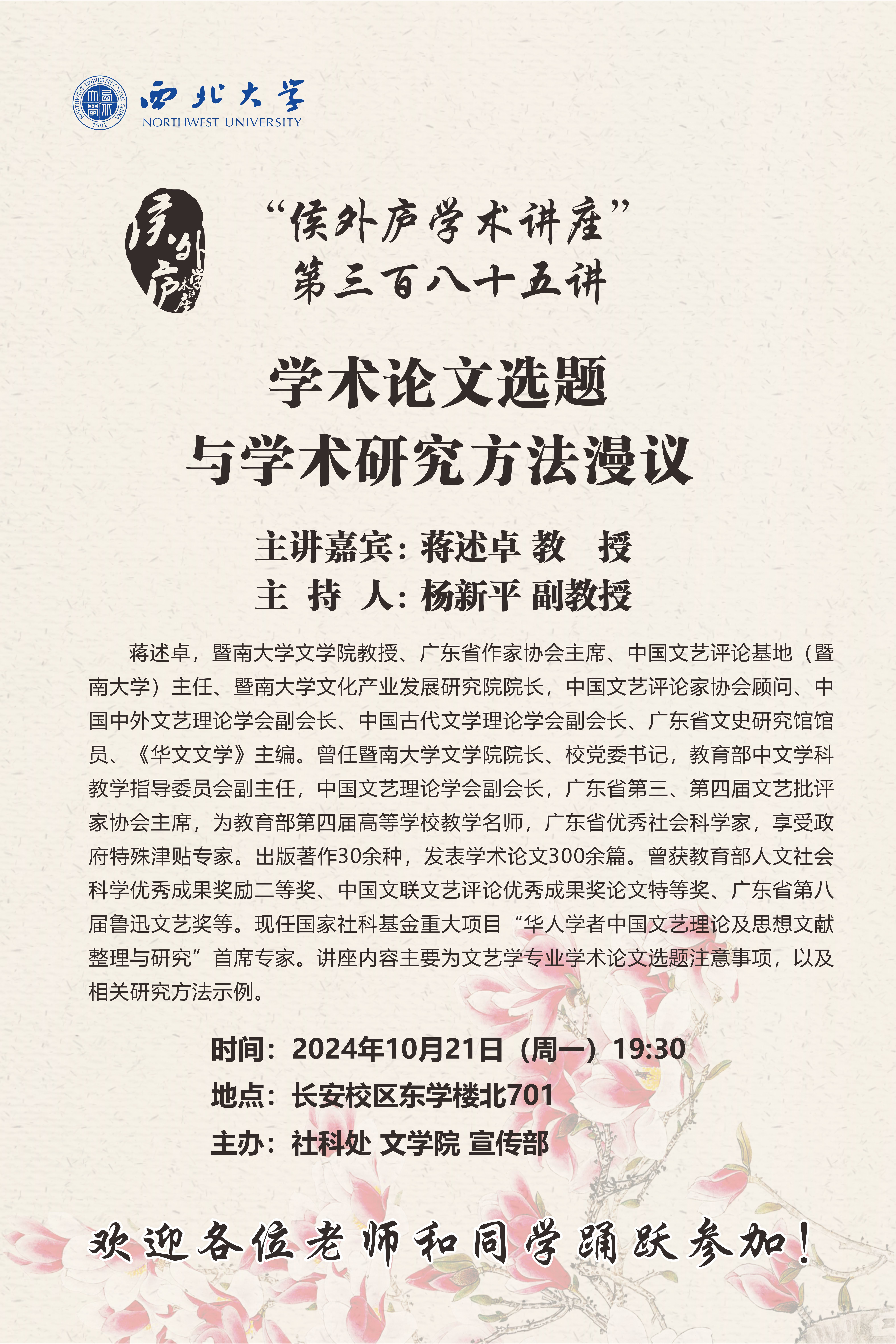 “侯外庐学术讲座”第三百八十五讲:学术论文选题与学术研究方法漫议