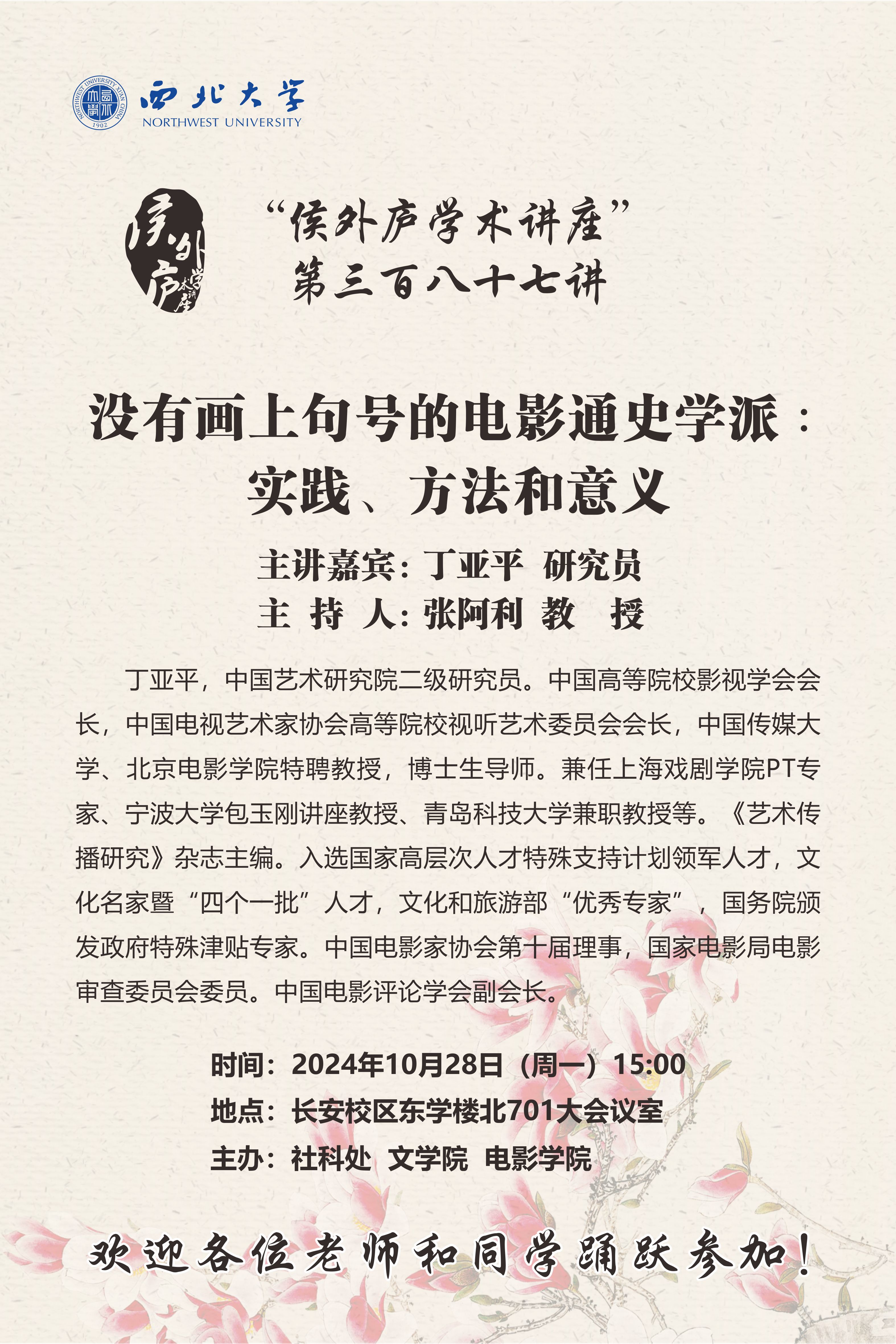 “侯外庐学术讲座”第三百八十七讲:没有画上句号的电影通史学派:实践、方法和意义