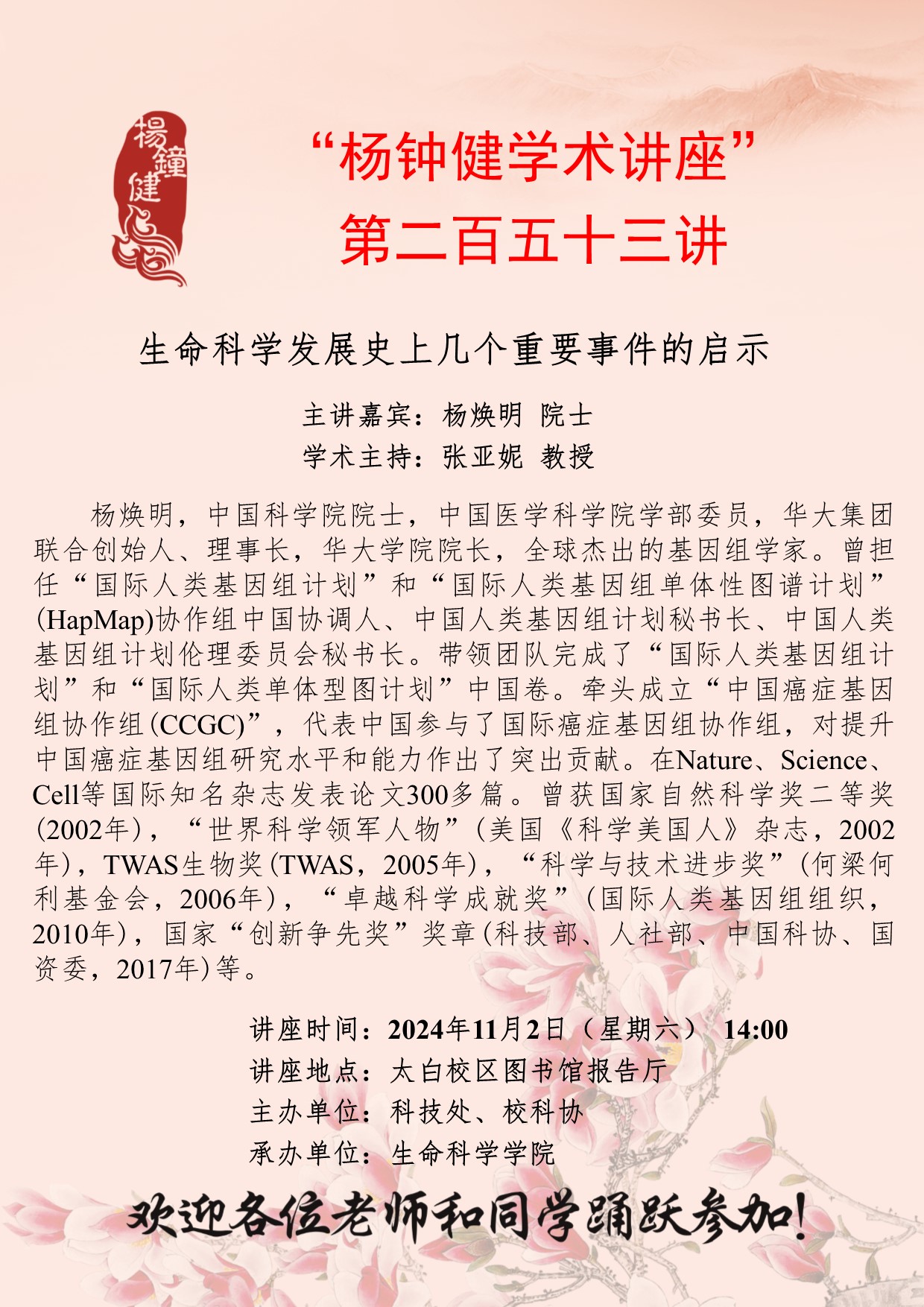 “杨钟健学术讲座”第二百五十三讲:生命科学发展史上几个重要事件的启示