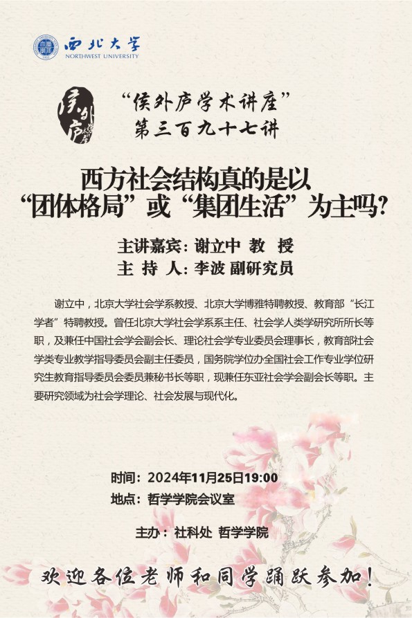 “侯外庐学术讲座”第三百九十七讲:西方社会结构真的是以“团体格局”或“集团生活”为主吗?