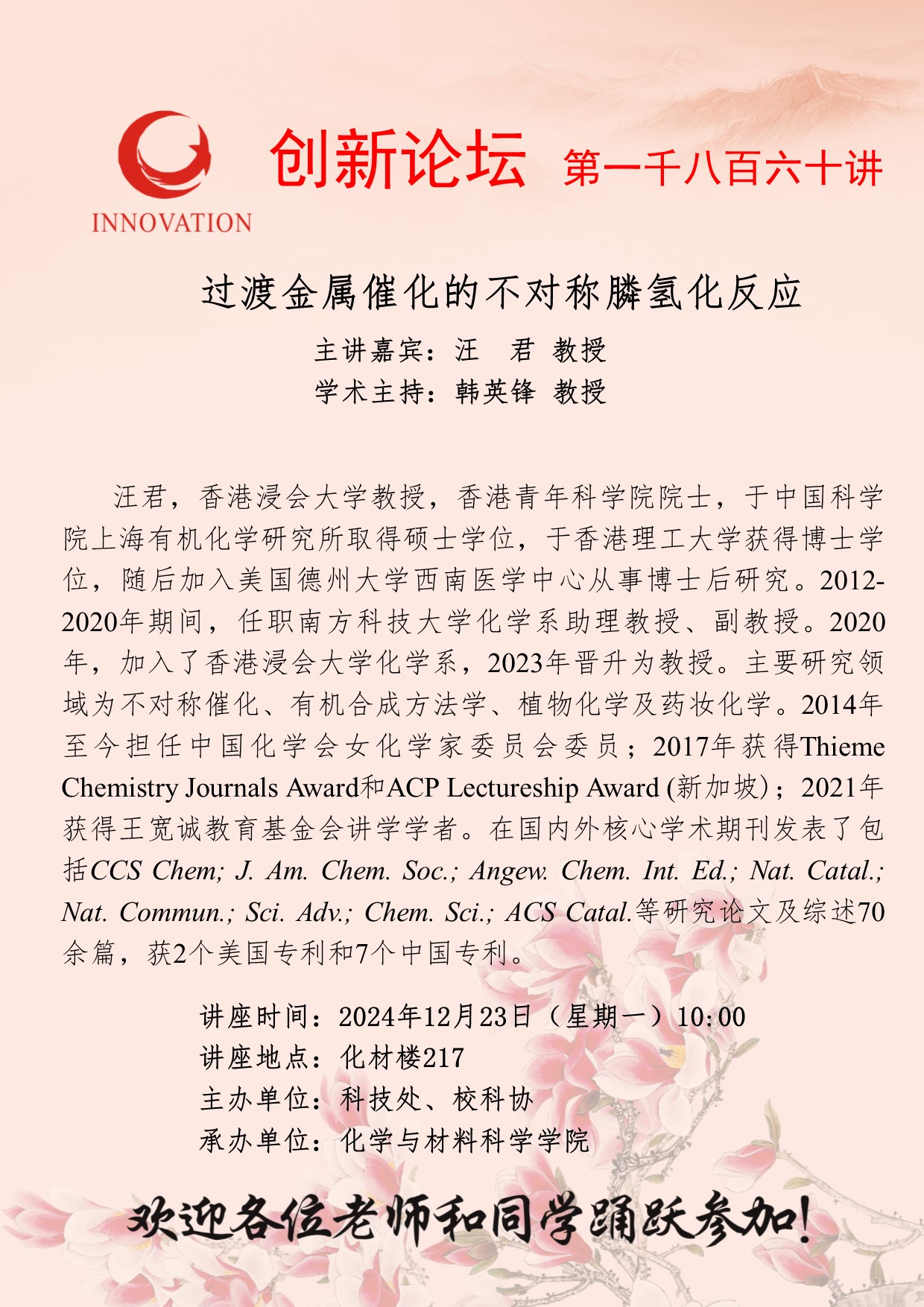 8868体育登录创新论坛第一千八百五十九讲:Steric-on-Demand Phosphine Ligands for Tackling Highly Steric-Congested Cross-Coupling Processes