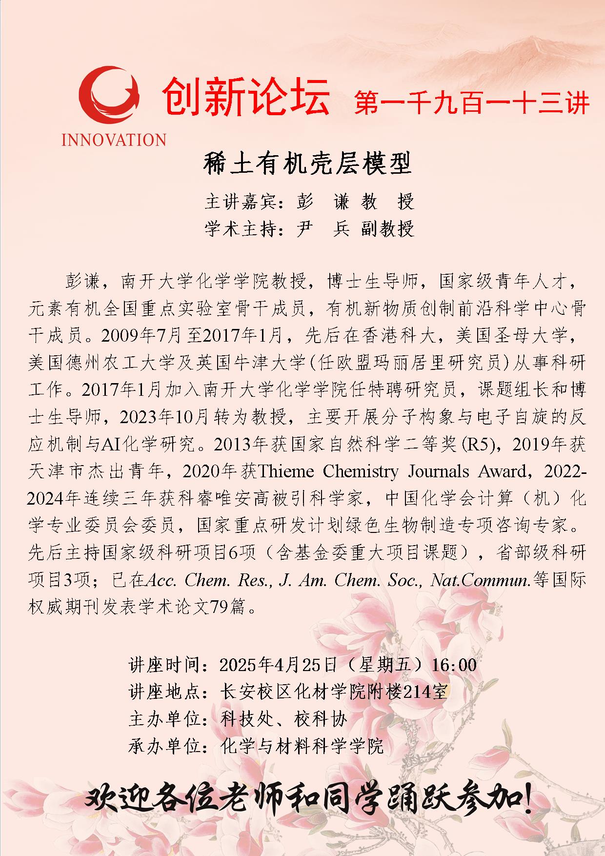 8868体育登录创新论坛第一千九百一十三讲:稀土有机壳层模型