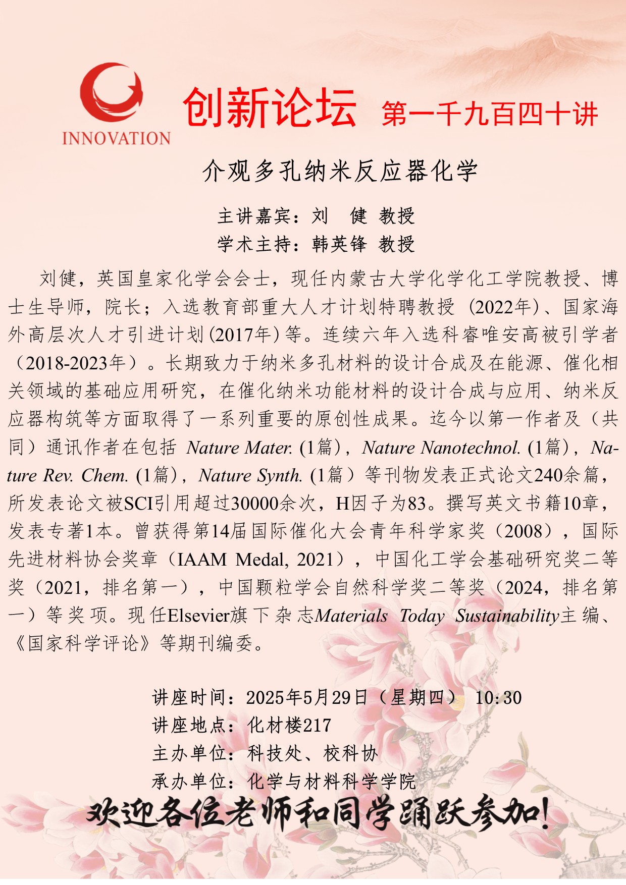 8868体育登录创新论坛第一千九百四十讲:介观多孔纳米反应器化学