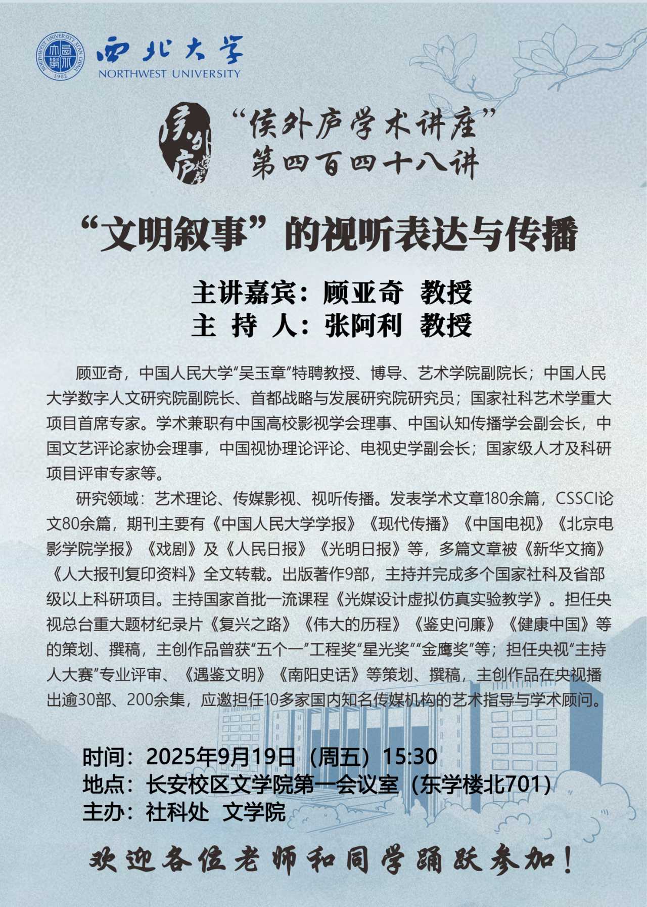 “侯外庐学术讲座”第四百四十八讲:“文明叙事”的视听表达与传播