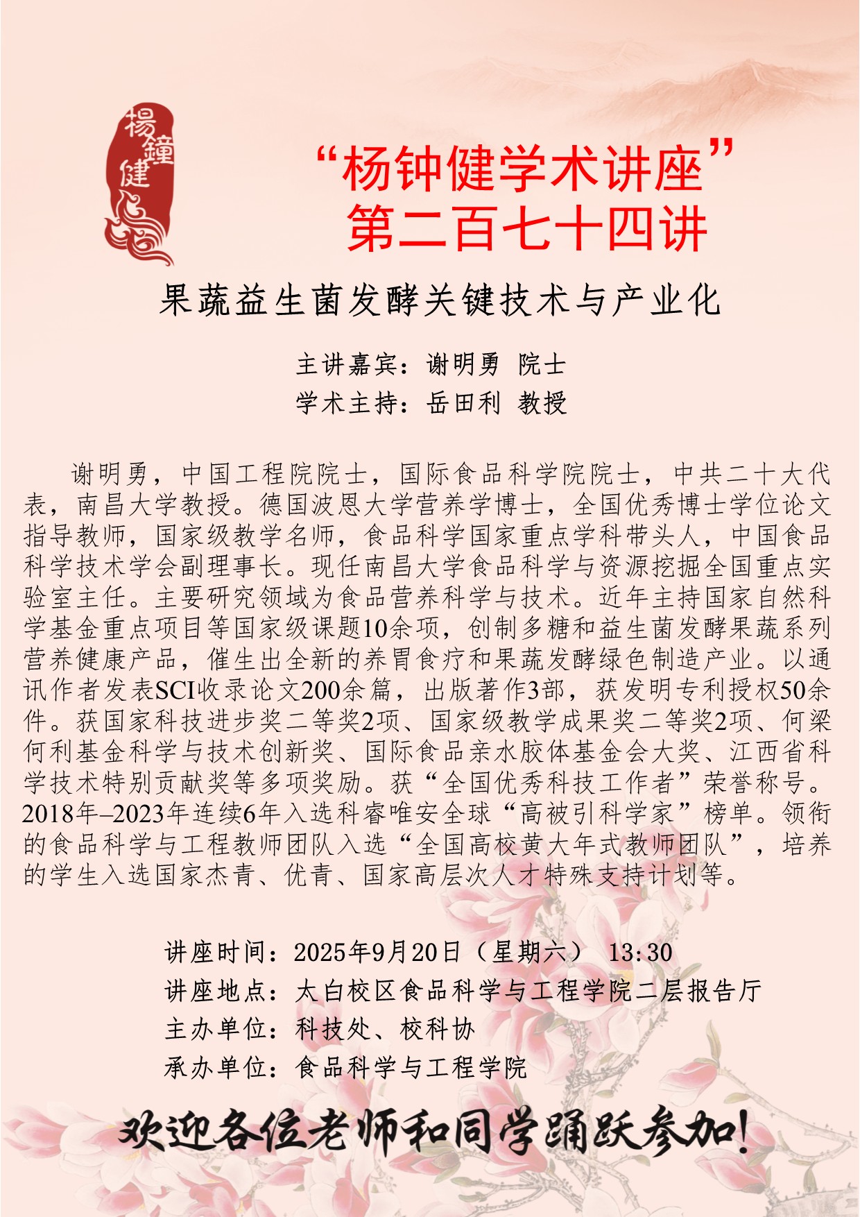 太白校区食品科学与工程学院二层报告厅