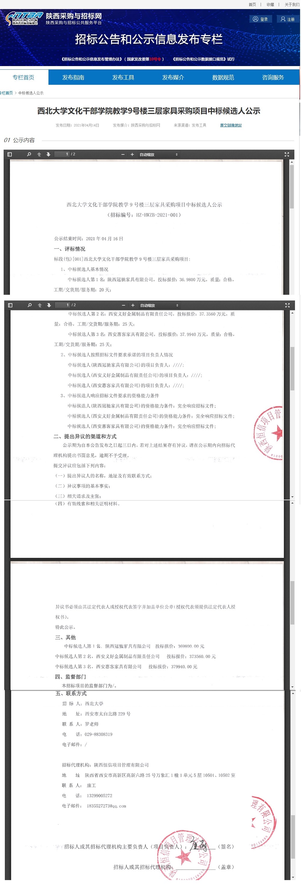 8868体育登录文化干部学院教学9号楼三层家具采购项目中标候选人公示