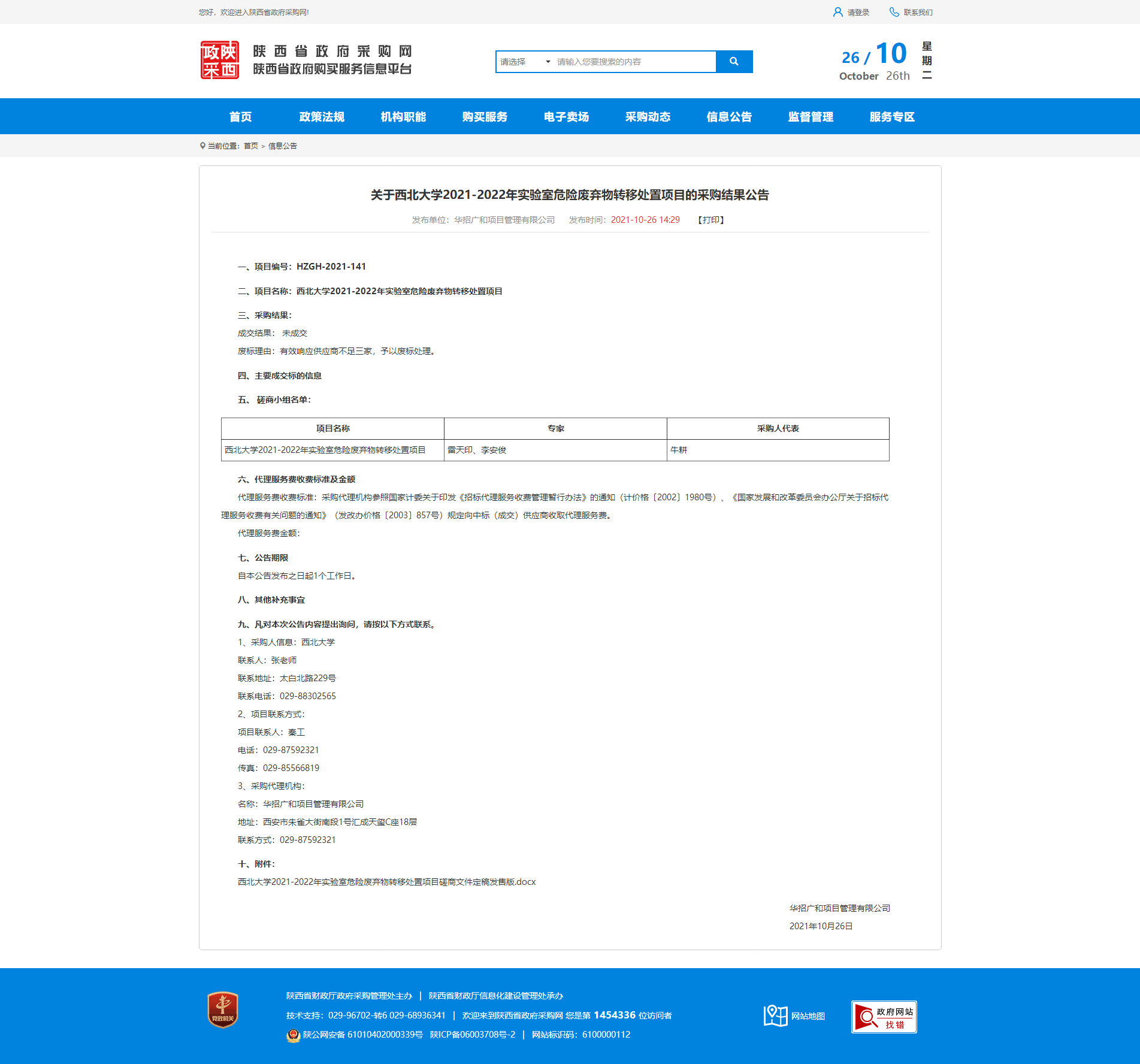 关于8868体育登录2021-2022年实验室危险废弃物转移处置项目的采购结果公告