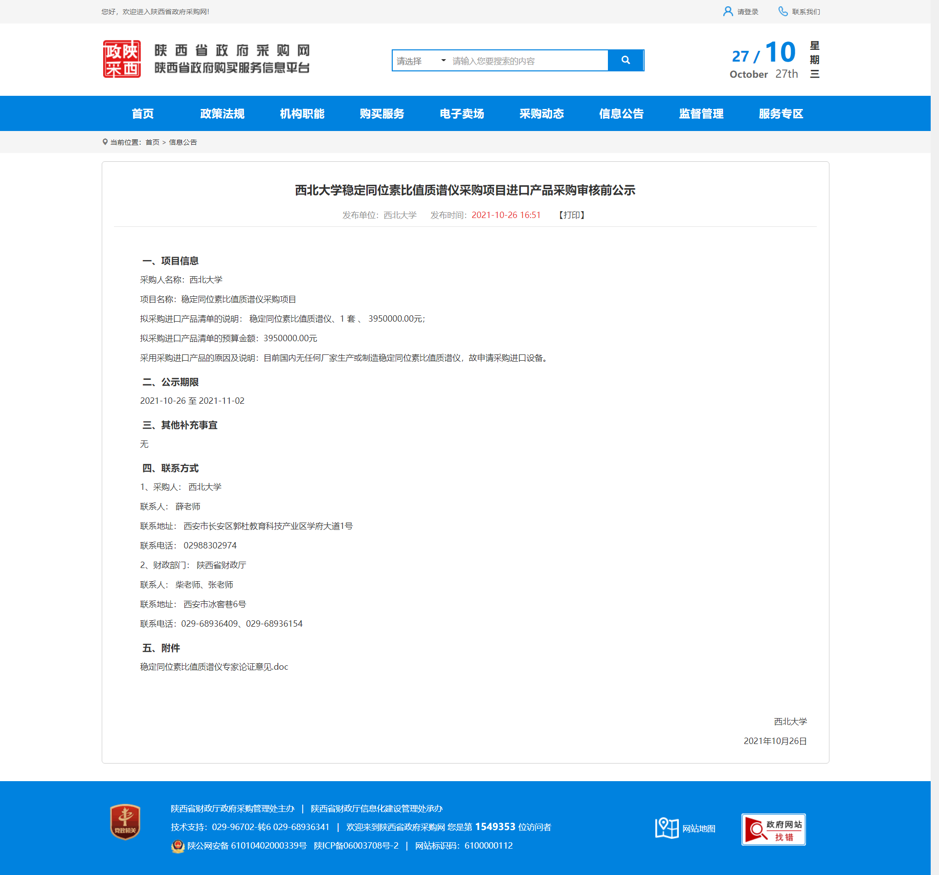 8868体育登录稳定同位素比值质谱仪采购项目进口产品采购审核前公示 作者: 编辑:薛利娟 时间:2021-10-27 原公告地址:http://www.ccgp-shaanxi.gov.cn/notice/noticeDetail.do?noticeguid=8a85be317c20d707017cbbc8d6dd7269