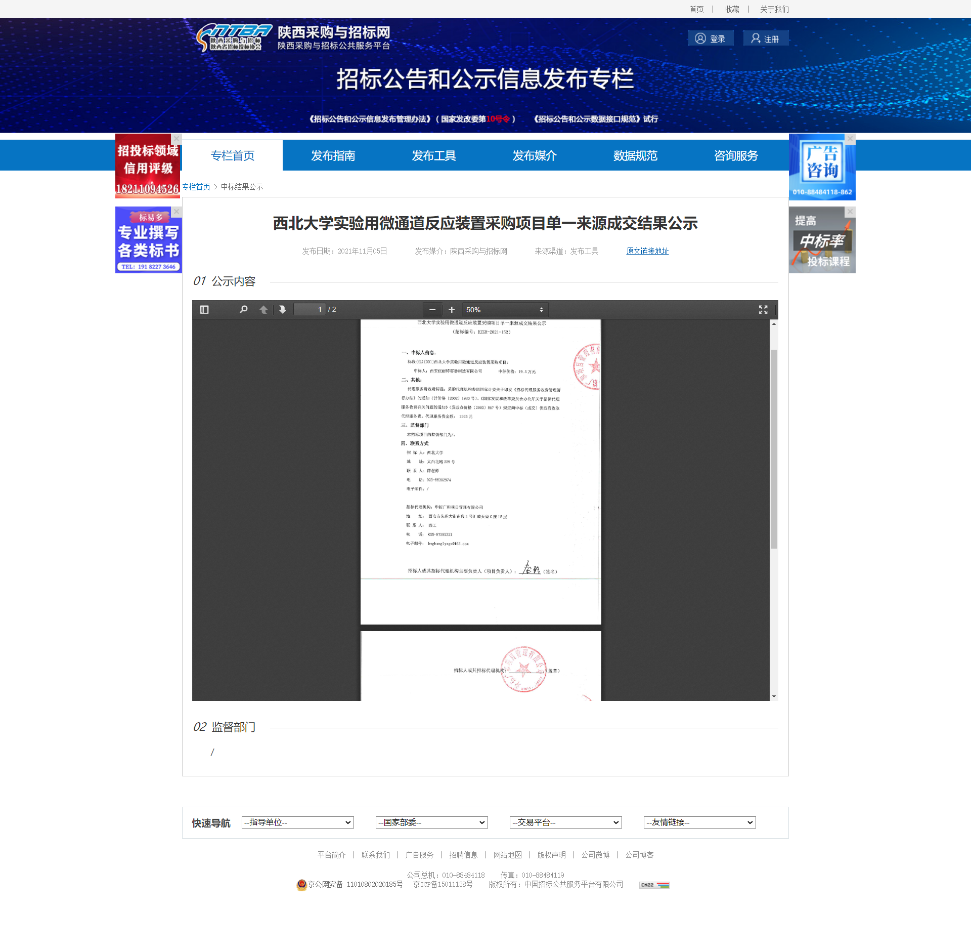 8868体育登录实验用微通道反应装置采购项目单一来源成交结果公示 作者: 编辑:薛利娟 时间:2021-11-05 原公告网址:http://bulletin.sntba.com/resultBulletin/2021-11-05/360931.html