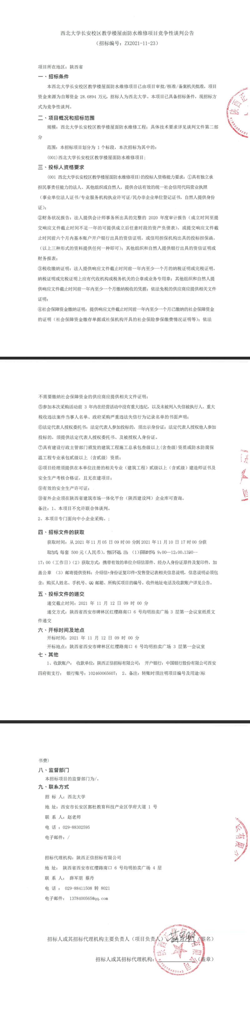 8868体育登录长安校区教学楼屋面防水维修项目竞争性谈判公告