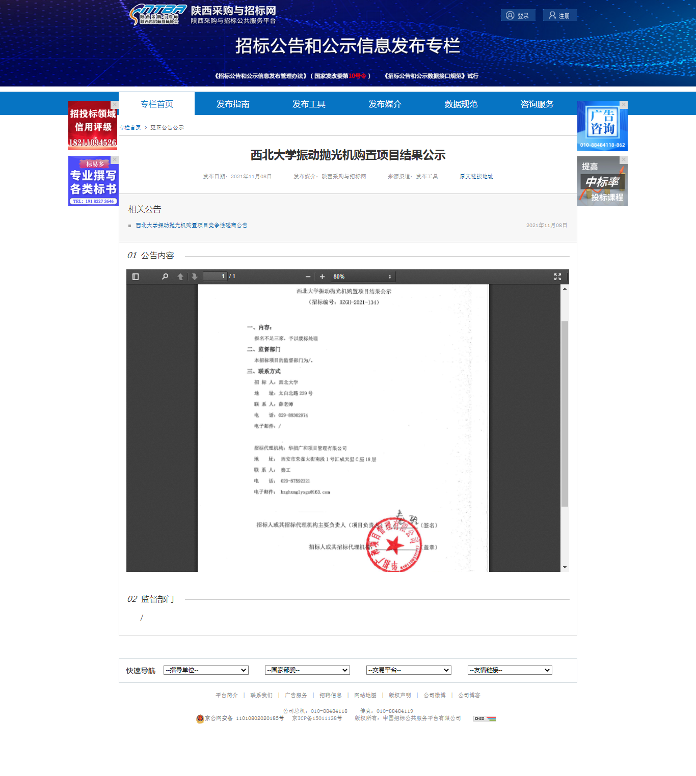 8868体育登录振动抛光机购置项目结果公示 作者: 编辑:薛利娟 时间:2021-11-08 原公告网址:http://bulletin.sntba.com/changeBulletin/2021-11-08/361693.html