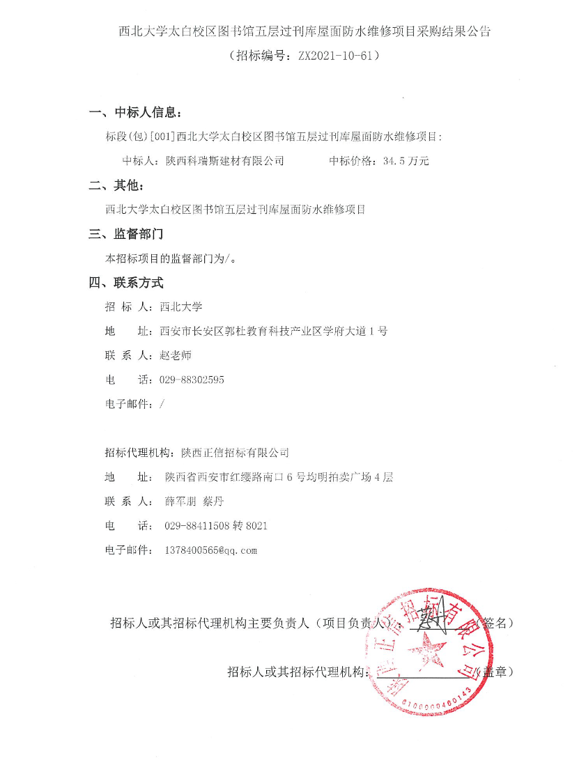 8868体育登录太白校区图书馆五层过刊库屋面防水维修项目采购结果公告