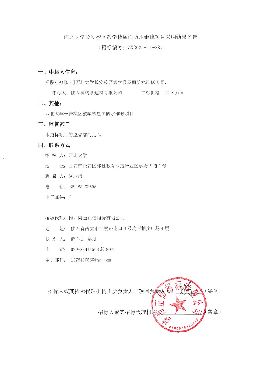 8868体育登录长安校区教学楼屋面防水维修项目采购结果公告
