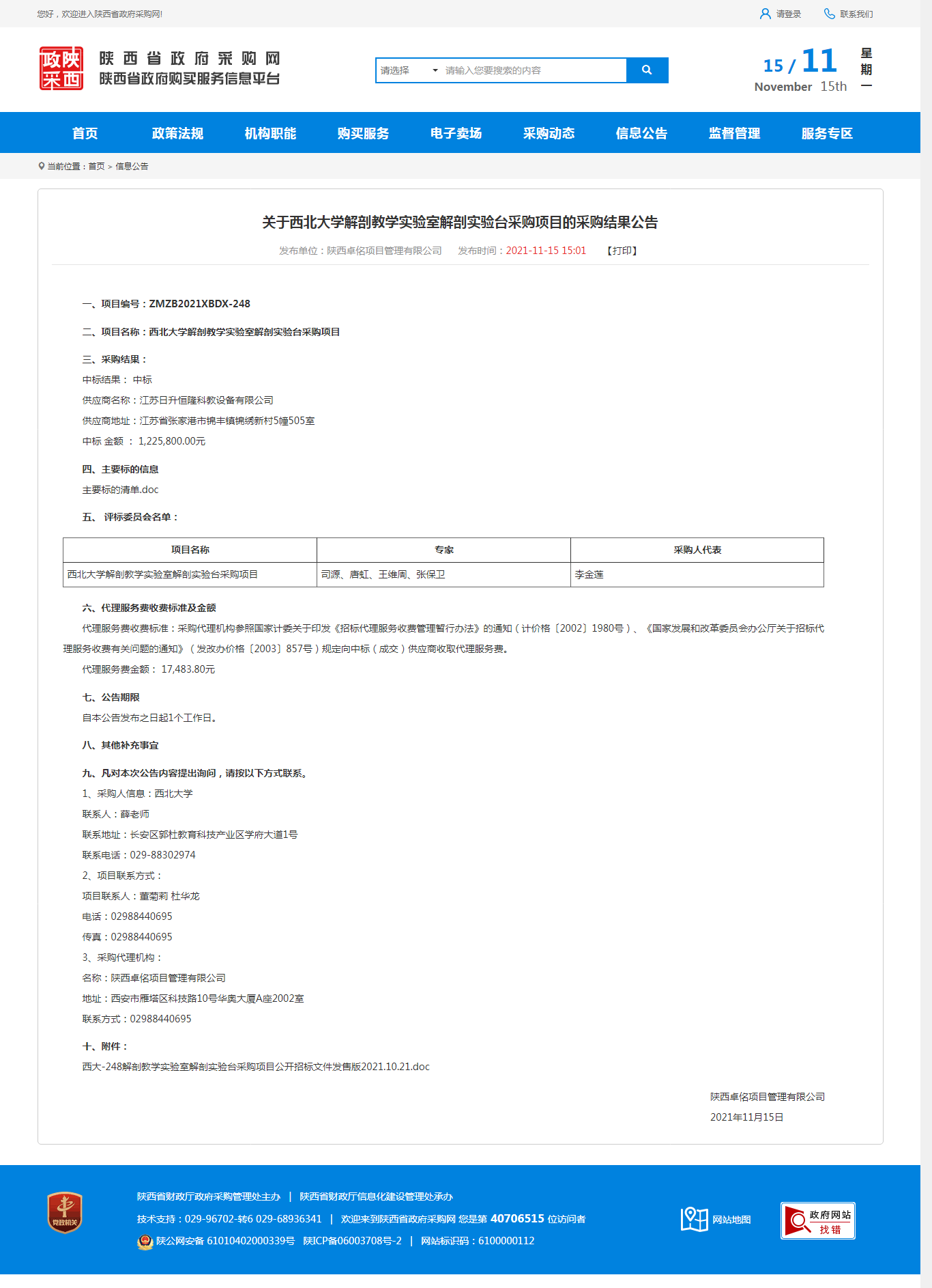 关于8868体育登录解剖教学实验室解剖实验台采购项目的采购结果公告 作者: 编辑:薛利娟 时间:2021-11-15 原公告网址:http://www.ccgp-shaanxi.gov.cn/notice/noticeDetail.do?noticeguid=8a85be347cefc0a5017d2265933b409c