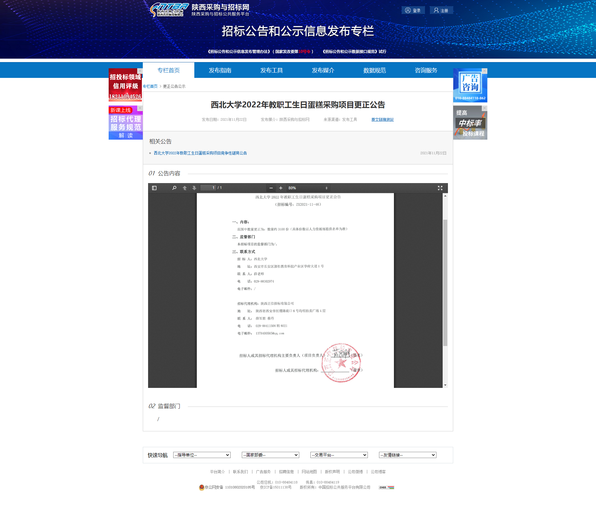 8868体育登录2022年教职工生日蛋糕采购项目更正公告 作者: 编辑:薛利娟 时间:2021-11-24 原公告网址:http://bulletin.sntba.com/changeBulletin/2021-11-22/366977.html