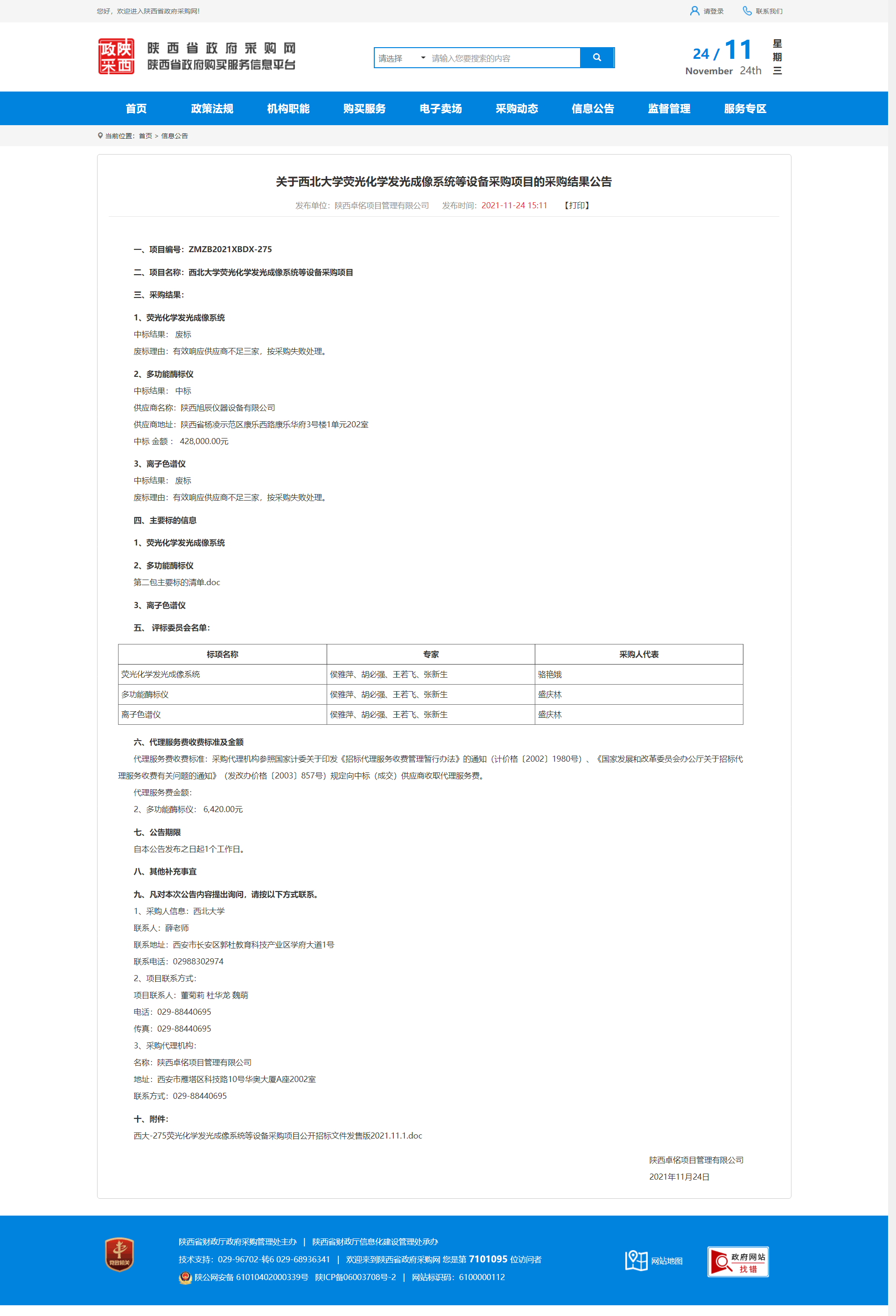 关于8868体育登录荧光化学发光成像系统等设备采购项目的采购结果公告 作者: 编辑:薛利娟 时间:2021-11-24 原公告网址:http://www.ccgp-shaanxi.gov.cn/notice/noticeDetail.do?noticeguid=8a85be347d2d6f8d017d50c64ee42710