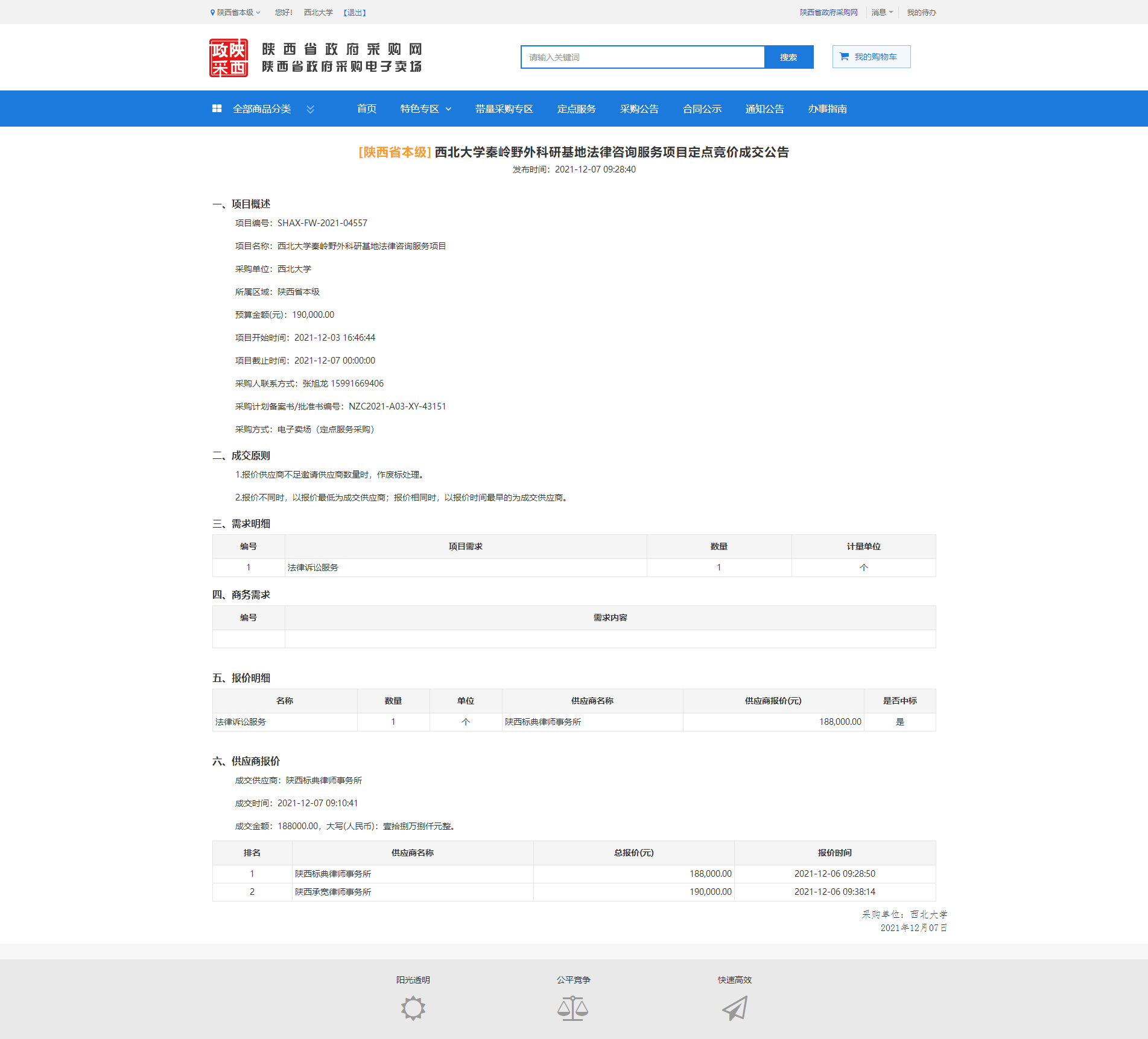 关于8868体育登录秦岭野外科研基地法律咨询服务项目定点竞价成交公告