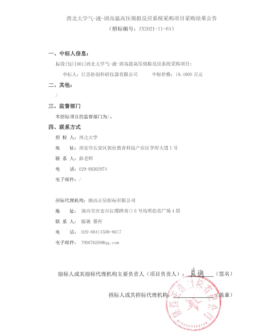8868体育登录气-液-固高温高压模拟反应系统采购项目采购结果公告