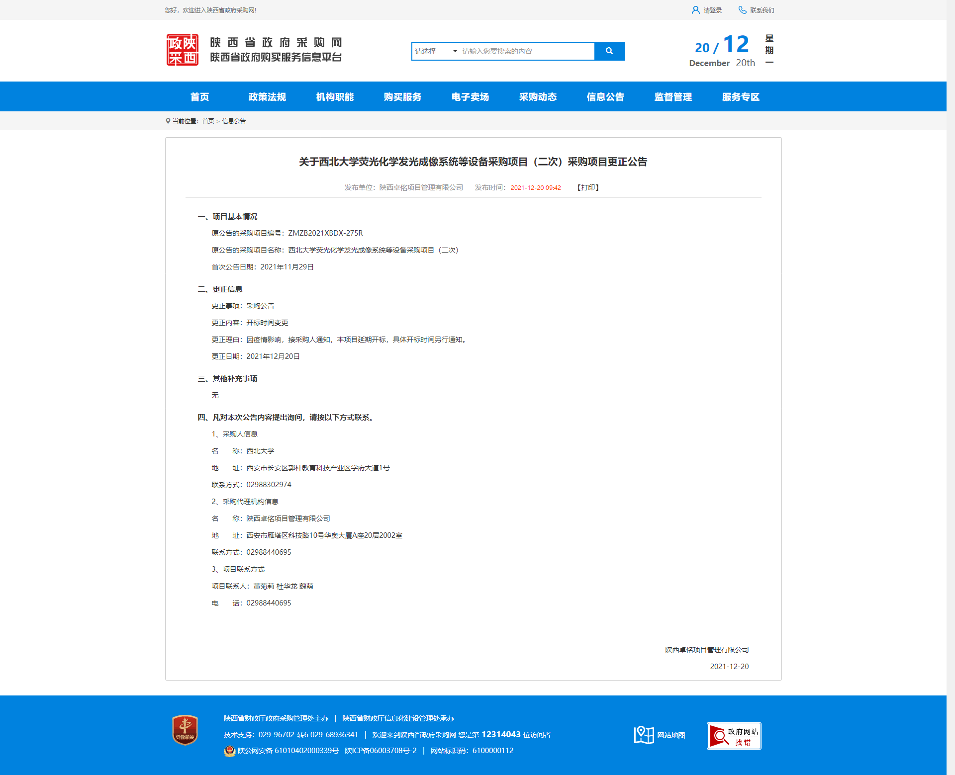 关于8868体育登录荧光化学发光成像系统等设备采购项目(二次)采购项目更正公告 作者: 编辑:薛利娟 时间:2021-12-20 原公告链接:http://www.ccgp-shaanxi.gov.cn/notice/noticeDetail.do?noticeguid=8a85be337dace9ea017dd57d4d013ce2