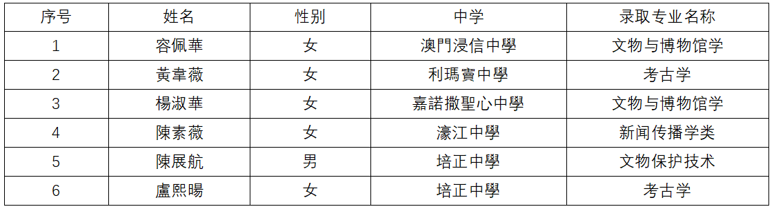 8868体育登录2022年澳门保送生录取名单公示 作者: 编辑: 时间:2022-01-19 根据教育部有关文件精神及《8868体育登录2022年招收澳门保送生简章》要求,日前,8868体育登录组织相关专家对报考8868体育登录的澳门考生进行了线上面试。依据面试综合表现,结合现场集体决议,报请校招生工作领导小组审议并通过,同意以下6名考生获得8868体育登录2022年澳门保送生录取资格,现将名单公示如下: 8868体育登录招生办公室 2022年1月19日