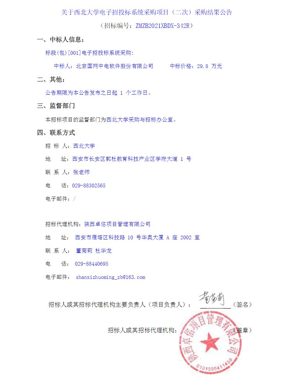 关于8868体育登录电子招投标系统采购项目(二次)采购结果公告