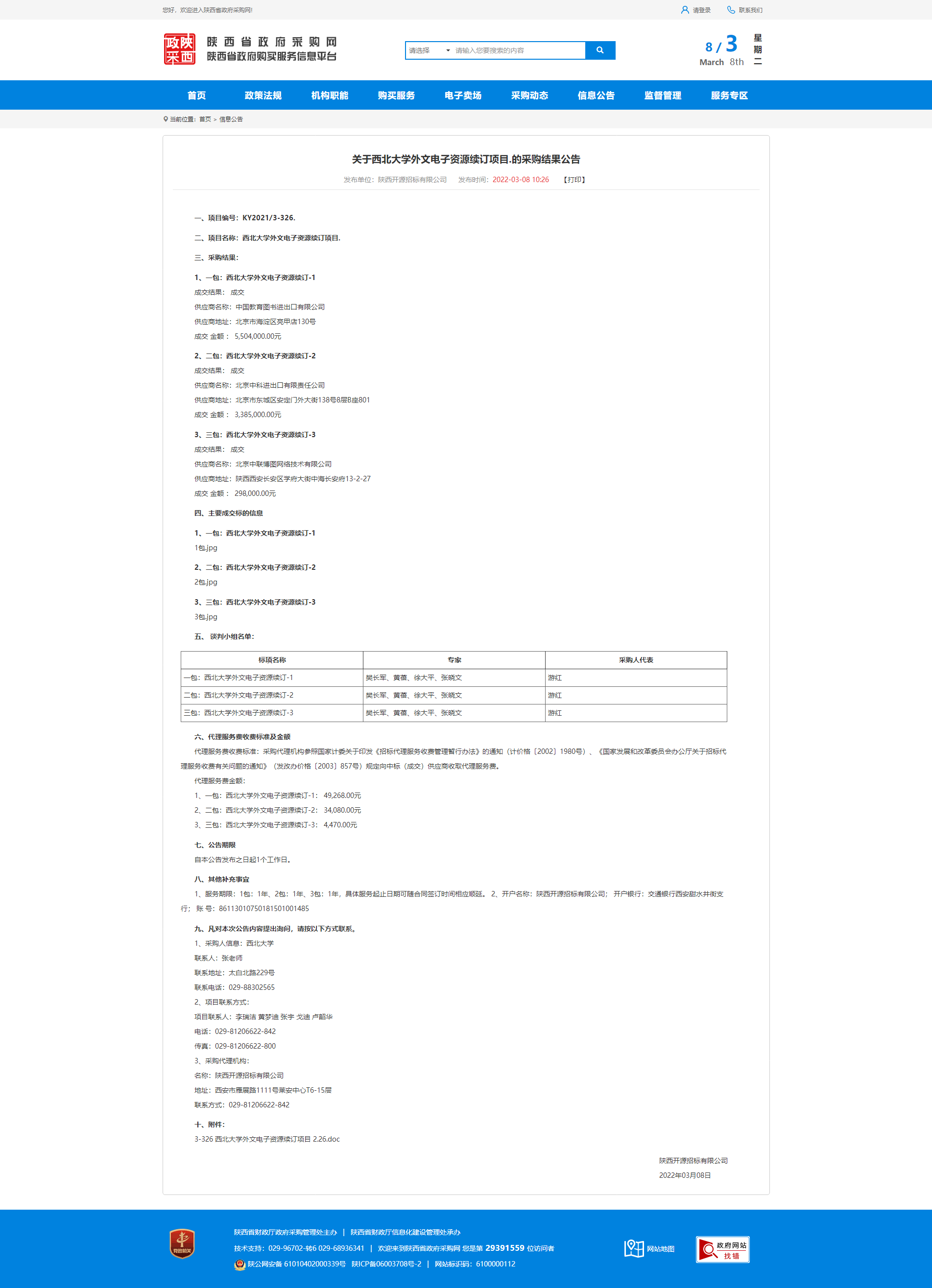 关于8868体育登录外文电子资源续订项目的采购结果公告